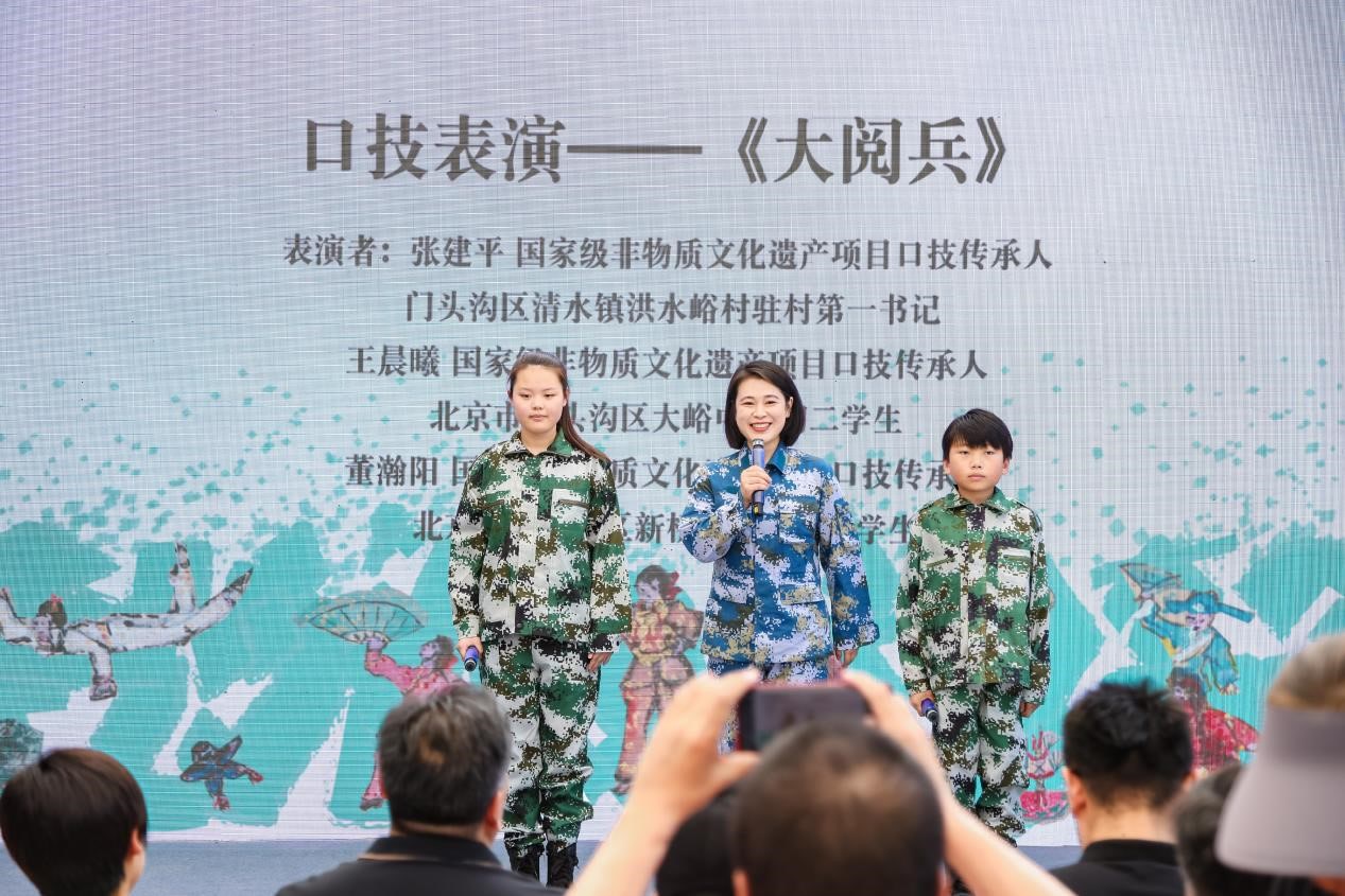 展演现场亮点纷呈。洪水峪村驻村第一书记张建平与门头沟区两名中学生同台献艺,三名传承人以口技模拟现代军事场景震撼开场,唇齿间迸发的战机轰鸣,让山谷仿佛有钢铁雄鹰掠过;88岁口技宗师牛玉亮率弟子演绎《百鸟争鸣》,婉转啼鸣穿透林间薄雾,与自然天籁浑然交融;北京皮影剧团的《龟与鹤》用光影诠释自然哲思,仙鹤振翅与灵龟潜游的意象,恰是洪水峪生态之美的生动写照;何丹的梅花大鼓《七律·长征》则以传统曲韵为红色精神注入时代力量。