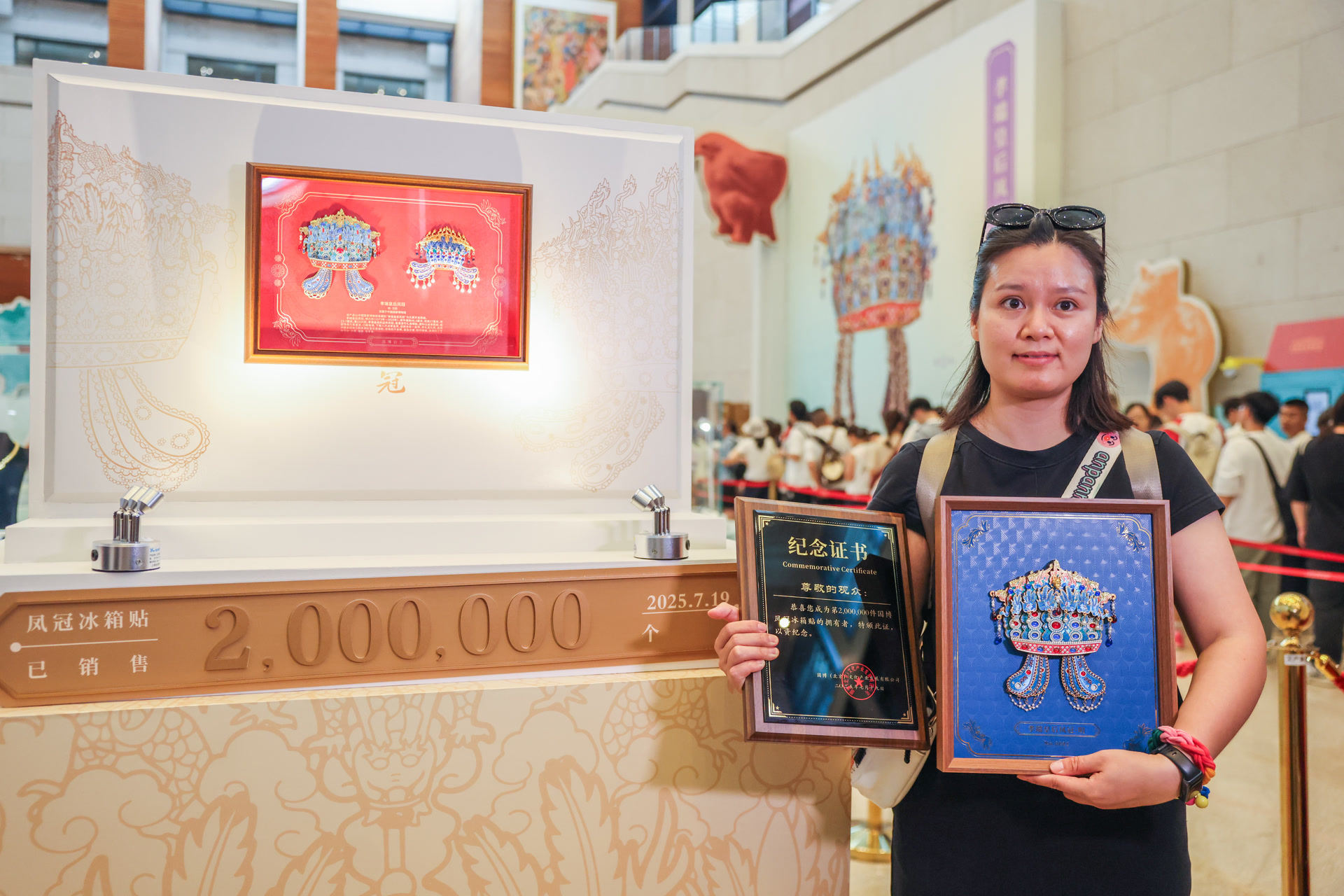 见证第200万件凤冠冰箱贴售出的,还有一位特殊观众——来自山东的李雅菲,也是第100万个冰箱贴的购买者。她笑着叮嘱新出炉的“100万”:“一定要好好保存,非常有纪念意义。”