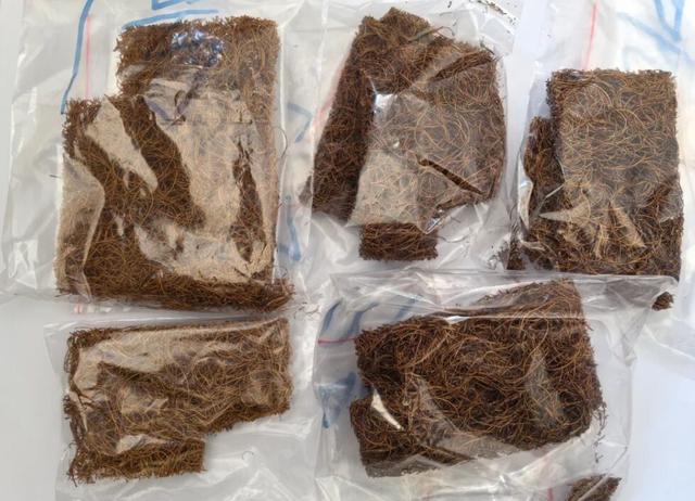“粑粑丝”,也被吸毒人员称为“草”,由大烟膏与多种植物混合制成。经检测,“粑粑丝”中含有吗啡、可待因、蒂巴因、罂粟碱、那可汀成分,长期吸食可对人造成极大的危害。