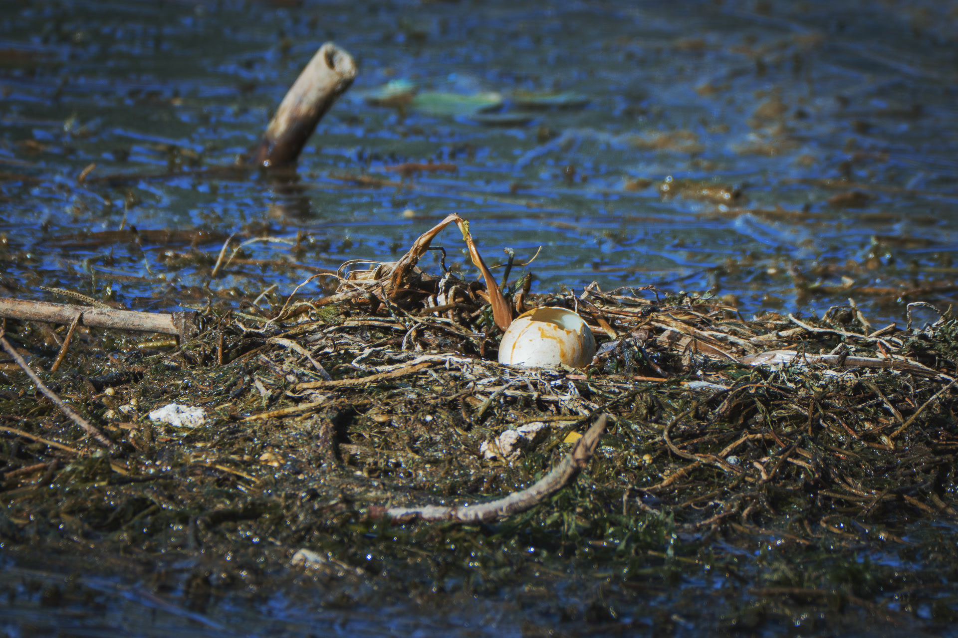 李聪全程目睹了鸟巢第五次被毁。那是7月12日,大风像无形的手一样,把鸟巢推到人来人往的岸边,凤头䴙䴘受到人的惊吓避到巢外。这时,一只黑水鸡忽然从芦苇丛里钻出来,对着巢里的两枚蛋,一下一下啄破,将里面的蛋黄囫囵吞了下去。