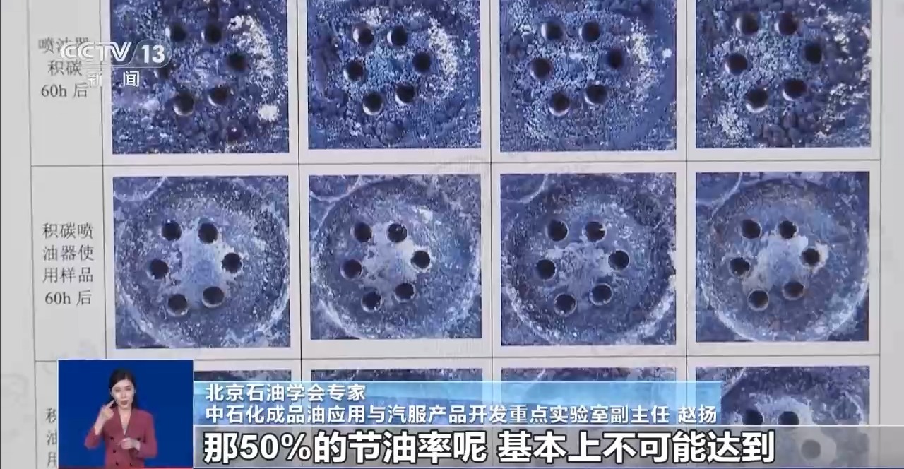 天津大学 先进内燃动力全国重点实验室 教授 刘海峰:这种说法偷换概念,它用最极端的条件,假如发动机已经是非常脏的情况,这时加入一些清净剂把积碳完全清除,恢复到类似于新出厂、新发动机的状态。它确实能够节能节油,达到30%到50%,但是平时很少会让发动机处在这么极端的状态。