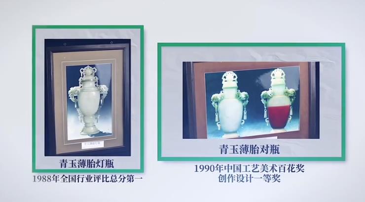 “还有那一对薄胎瓶,在天平上一个分量,434.9克,一直记在我心上。”1990年,杨根连设计的薄胎对瓶《四海升平》荣获全国百花奖设计创作一等奖,这对玉瓶高28厘米,瓶身雕刻的海水纹细如发丝,层次分明。同年,他被破格晋升为高级工艺美术师,成为当时最年轻的国家级玉雕大师,用一把刻刀在玉雕史上刻下了属于自己的坐标。