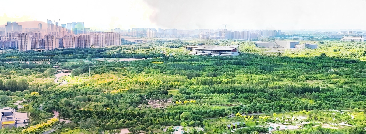在公园东侧有一处名为“叠翠轩”的景点,是整个城市绿心森林公园的制高点,“叠翠”二字的含义正是生态修复力求达到的理想图景。登上叠翠轩北望,视野极为开阔,一片绿色海洋尽收眼底,可以清晰地看见曾经的厂区经由模拟森林演替的植物群落由疏到密,由幼龄的先锋树种林到稳定的乡土树种林的过渡。城市绿心森林公园建设的重要任务之一就是对东方化工厂地区进行生态治理,曾经重度污染的厂区如今蜕变为绿色森林,正体现了生态文明建设的显著成果。