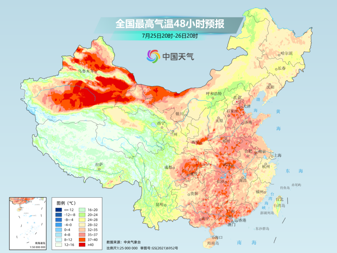 其中,明天的高温范围将是近期最大;26日起,受台风影响,江南东部等地降雨增多,江西、广东、湖南等地的高温将会暂时中断。