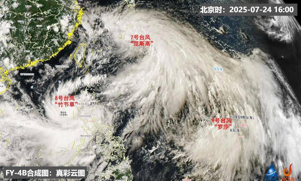 海上的台风这两天也集中“爆发”。继7号台风“范斯高”生成后,8号台风“竹节草”、9号台风“罗莎”也相继生成,形成了“三台共舞”的局面。
