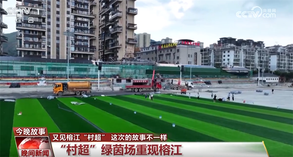 一周内遭遇两次洪水侵袭,淤泥厚度曾超过一米,球场损毁严重……经过二十多天的奋战,两天前,“村超”球场8000平方米的人工草坪顺利完工交付使用。球场边矗立的“贵州村超”展板、重新搭建粉刷的看台、调试升级的照明灯、铺设完毕的人工草坪,那个承载着无数人激情和欢乐的“村超”绿茵场重现榕江。