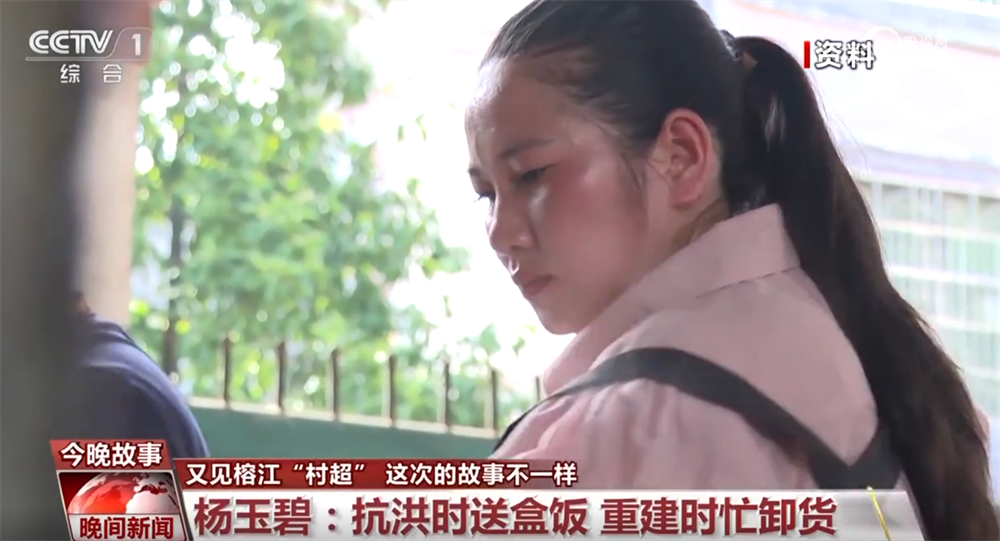 张妍是江苏一家生产足球场草坪的企业负责人。这次遭遇洪灾后,她第一时间联系了当地的相关部门,想为“村超”球场重建捐赠人工草坪。从研发到生产,张妍的团队日夜赶工连续奋战,不到三天时间就把捐赠给榕江的8000平方米人造草坪赶制出来,穿越一千六百多公里来到榕江。当货车进场的时候,榕江当地的群众已经在现场等待帮忙卸货,杨玉碧就是其中之一。抗洪救灾时,杨玉碧在忠诚村的食堂做过厨师,给救援人员做盒饭。如今,她又来到“村超”球场献出自己的一份力。