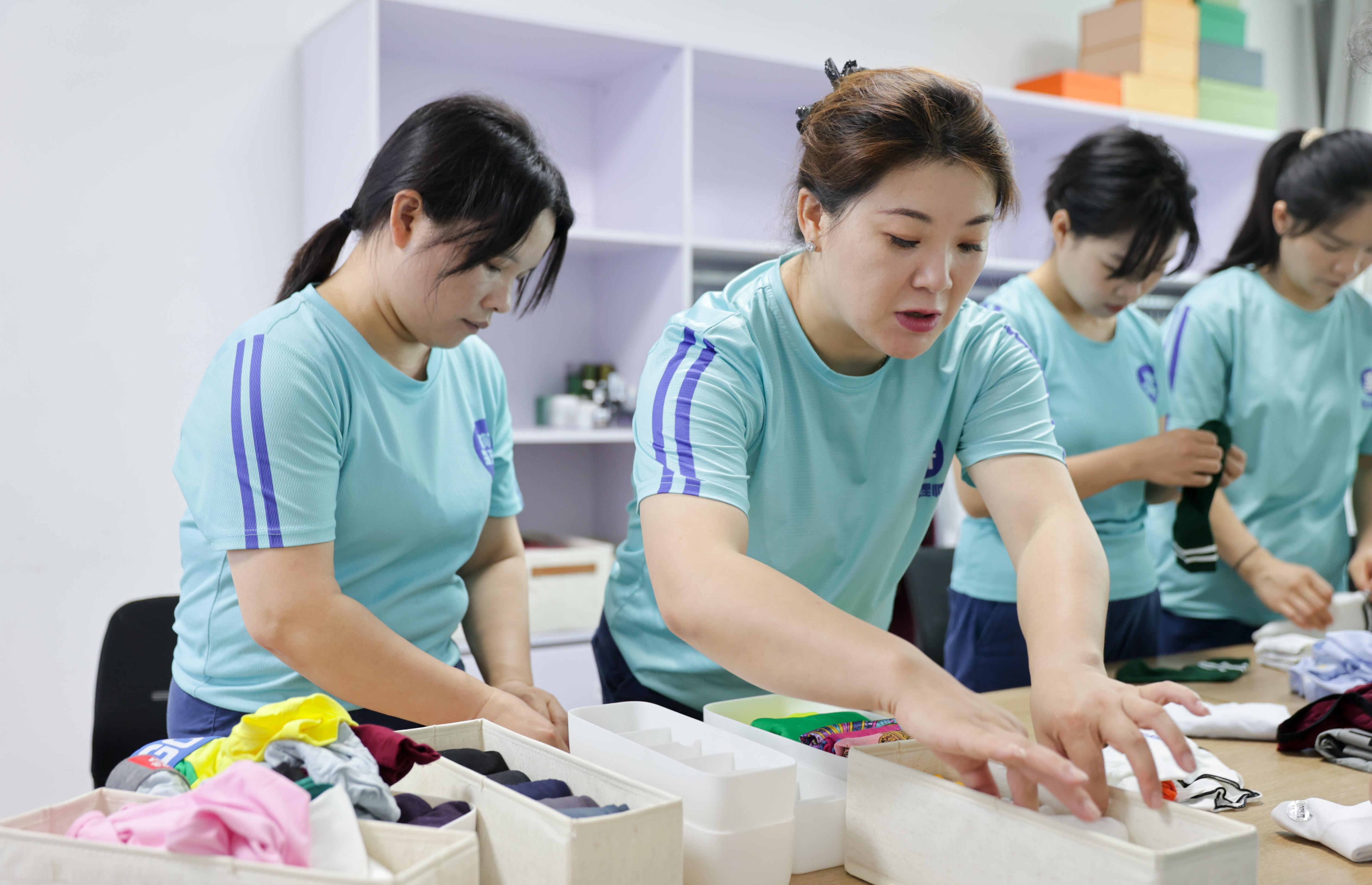 田维珊原本在当地一家国营企业上班,2019年,她为照顾家庭辞去工作,加入家政行业,探索新的职业路径。她发现,随着人们生活水平的提升,许多客户因屋内空间规划不合理、衣物收纳困难而发愁。