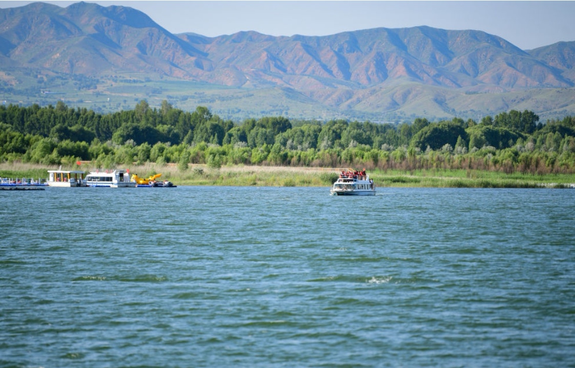 近日,在内蒙古自治区乌兰察布市凉城县,游客乘坐快艇游览“塞外天池”岱海,发现岱海湖里的中华青鳉鱼、鲫鱼、麦穗鱼、虾虎鱼等鱼儿欢快畅游。