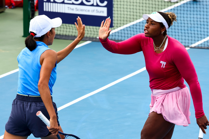 WTA500华盛顿站双打半决赛,2号种子张帅/汤森德在4-1领先时,她们的对手拉杜卡努/莱巴金娜宣布退赛,张帅也闯入本赛季的第四个女双决赛(与四位不同搭档)。接下来,她们将和多勒海德/肯宁争夺冠军。