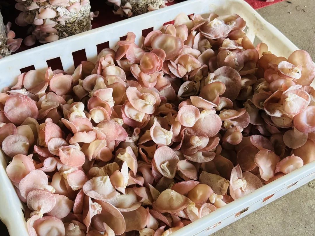 今年试种了5000棒粉木耳,目前来看长势不错,每棒产量在3斤左右。相较于黑木耳,粉木耳的市场价格翻了3倍。