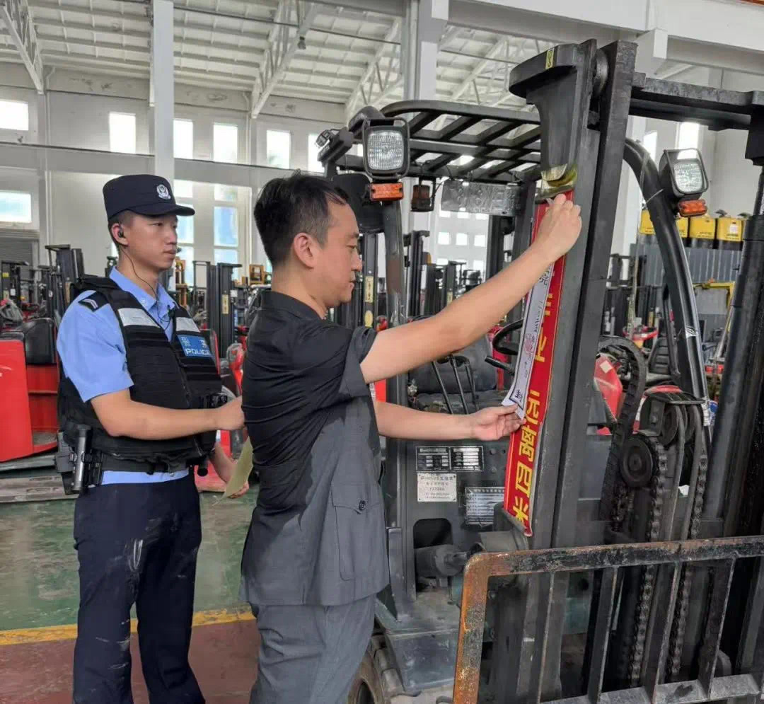 晚上8点,李林强将最后一张封条贴到了第511辆叉车上。经过高温下12个小时的不停工作,干警们从现场3000余辆叉车中精准识别并依法保全了被查封的500余辆叉车及设备。原本计划4天完成的任务,仅用1天便全部完成。