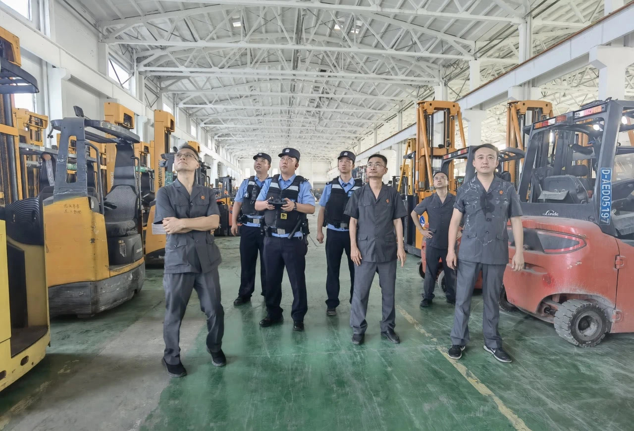 中午12点,仓库内温度突破40℃。干警们短暂休息后,继续投入工作。汗水模糊了视线,他们用毛巾擦一擦继续工作;高温令人疲惫,他们靠意志力咬牙坚持,确保每一辆叉车、每一件设备都登记准确、查封到位。