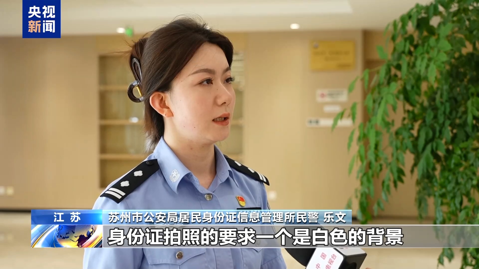 苏州市公安局居民身份证信息管理所民警乐文:身份证拍照的要求一个是白色的背景,所以就要尽量穿深色有领的上衣,避免穿白色或者黄色等颜色比较浅的上衣,这是为了防止和背景混淆。另外一方面像化妆,有些女性她会化一点妆,身份证上的要求是不能化浓妆,包括发型不能过于蓬松高耸,不能遮盖眉毛、耳朵,还有不能染过于艳丽的彩发,包括一些比较大的首饰、耳环、项链,也是不能佩戴的。只要符合这几条,就是可以的。