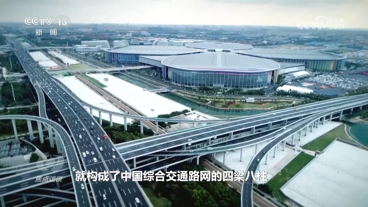 国家发展改革委综合运输研究所所长李连成:“‘6轴’就是把中国经济社会发展中的四极连接起来了,‘7廊8通道’就把我们国家主要城市群乃至周边重要口岸连接起来了。‘6轴7廊8通道’就构成了中国综合交通路网的四梁八柱,起到了主骨架的作用。”