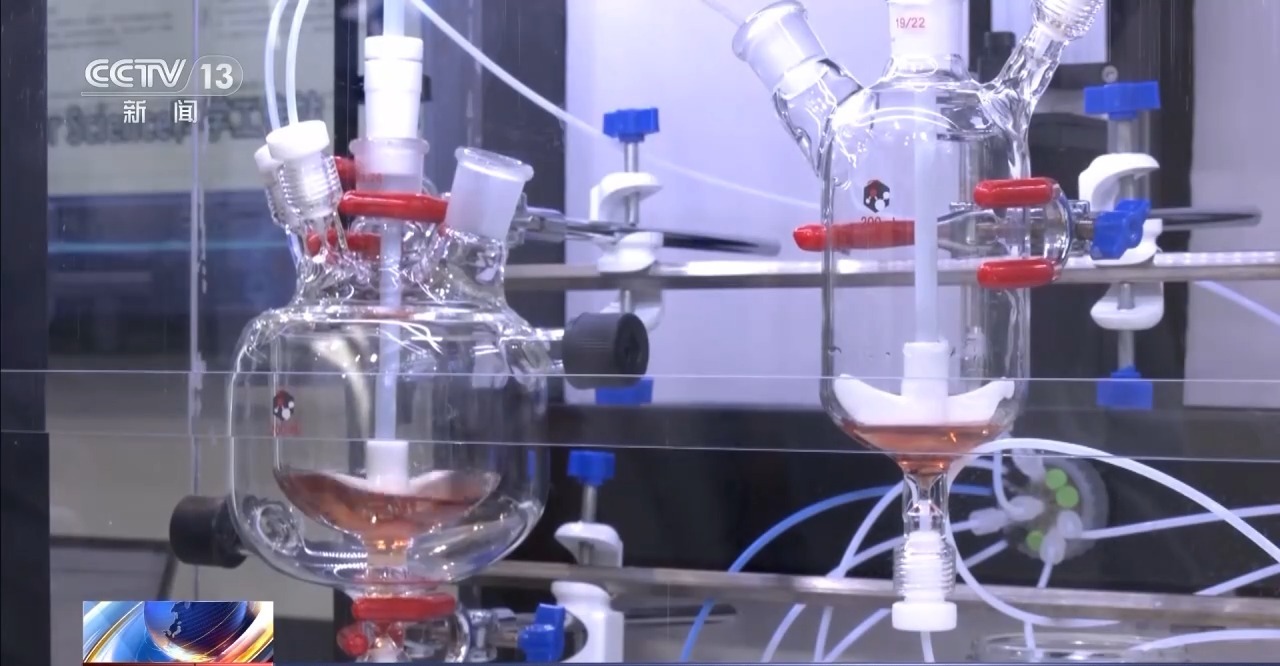 这个“AI+科学”试验装置正在进行一项化学分子合成试验。它不仅可以根据科研人员的需求,利用人工智能化学大模型设计试验方案,还能把这个试验方案转化成设备操作指令,直接驱动设备自动开展试验。