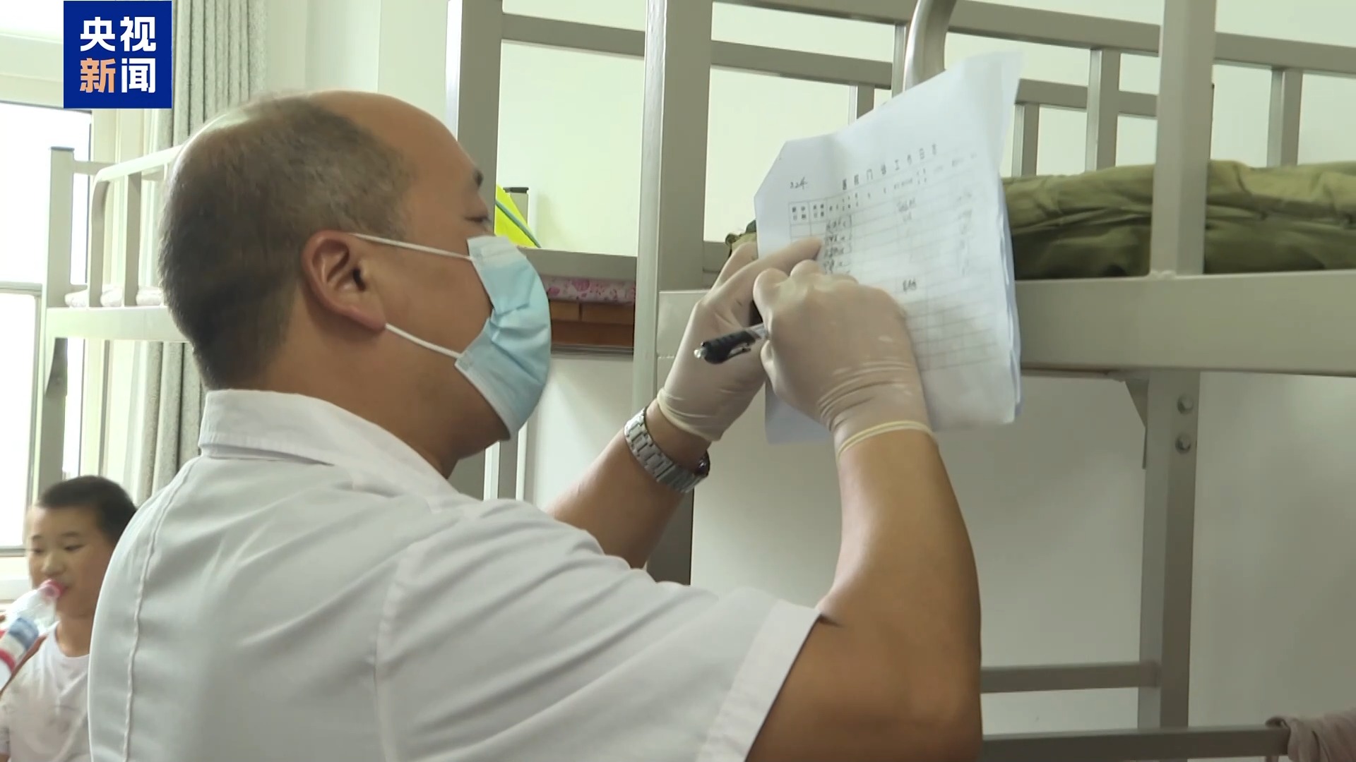 村民告诉记者,强降雨导致村里堤坝决口,水位持续上涨,影响到低洼处的民宅。27日早上,当地部门组织消防队员和交通部门协调公交车将村民集体转移安置。记者在安置宿舍看到,巡查的医生正在详细了解和记录每一位村民的身体状况。