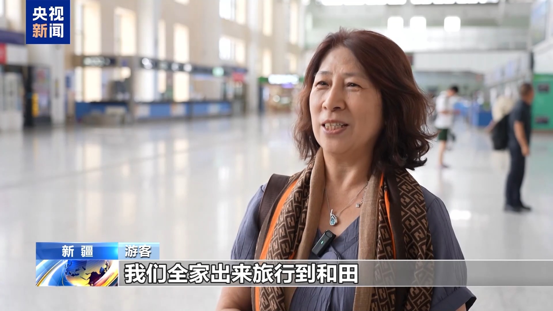 新疆和田昆冈机场旅客服务部主管 王维:今年旅客量增长特别明显。我们增派人手引导客流、优化值机流程,还加开了安检通道,就是为了让旅客走得快、走得舒心。