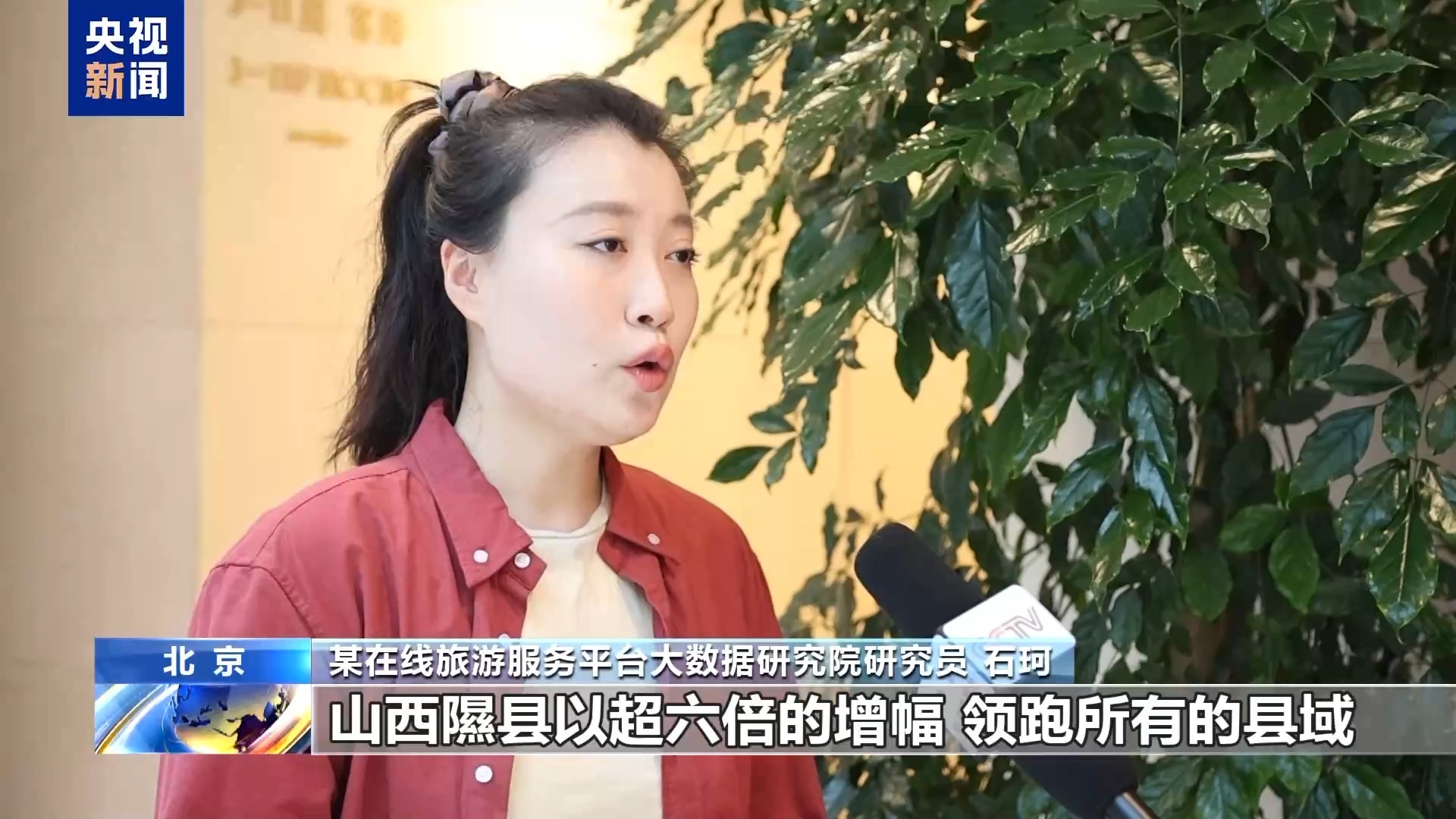 某在线旅游服务平台大数据研究院研究员 石珂:在预订增幅上,山西隰县以超六倍的增幅,领跑所有的县域,而福建将乐县和山西陵川县的增速也紧随其后,均达到三倍以上。