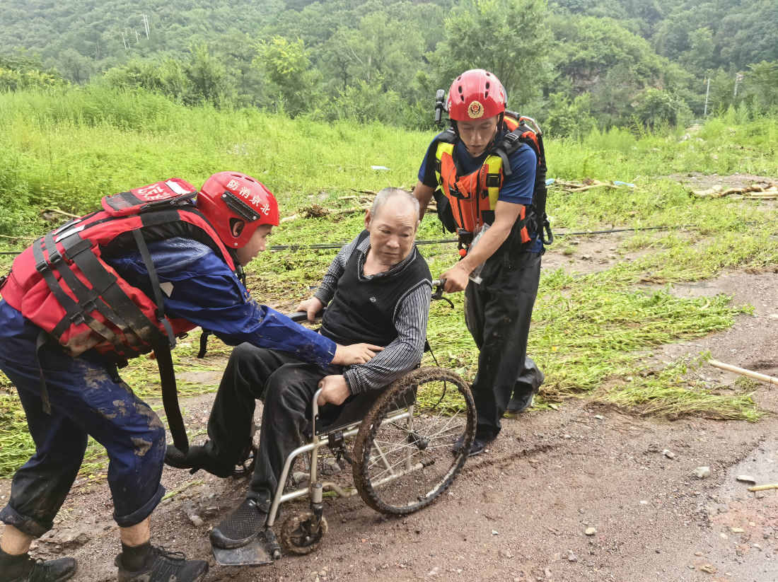 转移途中,有的老人无行动能力,轮椅也在洪水中损坏,于是队员们就合力抬着轮椅,稳稳前行;有的母亲怀抱着只有4个月大婴儿,队员们立即上前,两人一组,小心翼翼地抬起婴儿车。