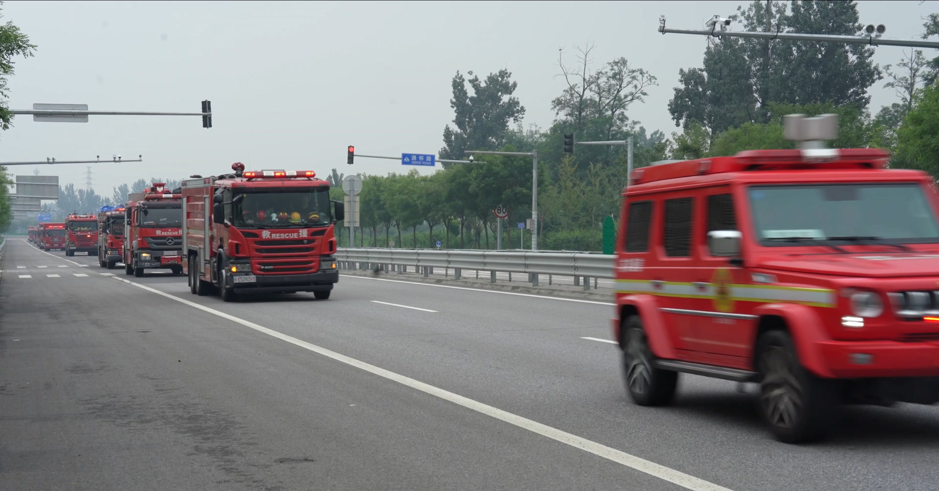 据悉,此次朝阳消防增援怀柔共集结13辆消防车、2辆露营车、1辆饮食保障车和66名救援队员,携带5艘冲锋舟、4套海事卫星电话、3套卫星组网系统和2架侦察无人机,连夜开赴怀柔灾区开展救援,27日凌晨,救援队伍到达指定地点。