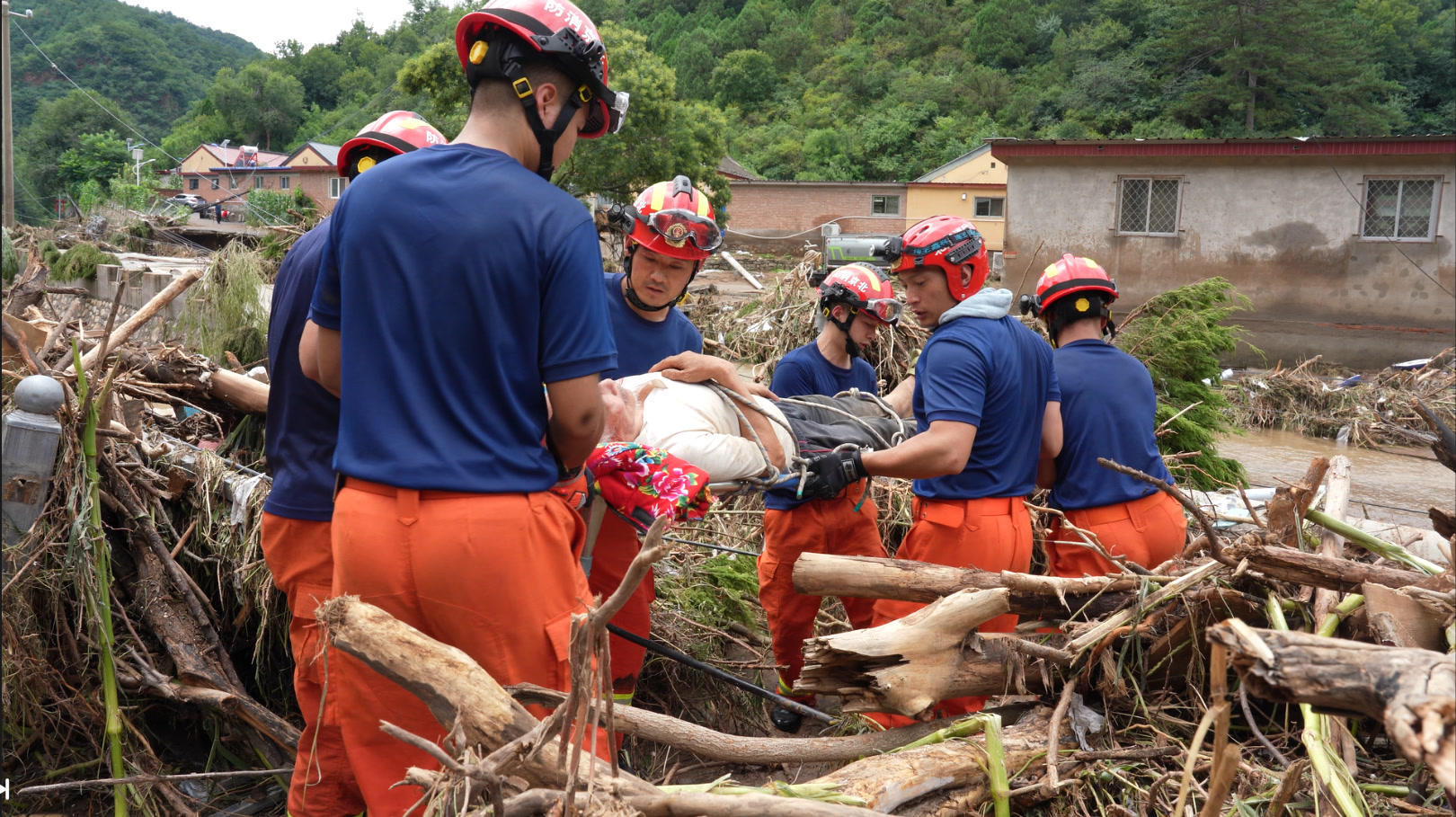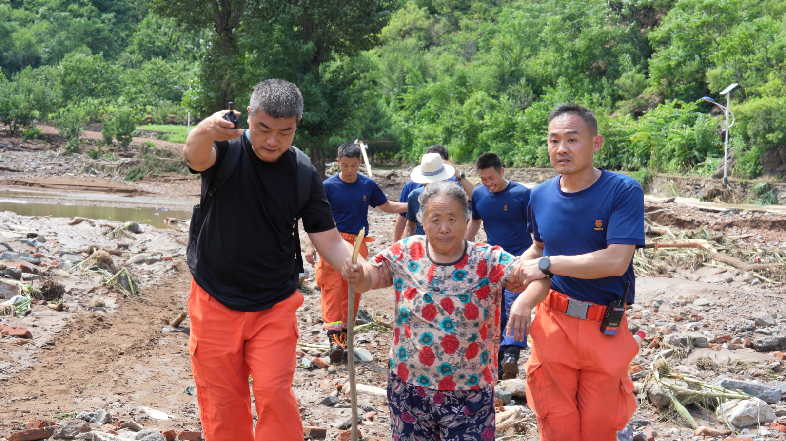 特大暴雨造成了当地通信设施损坏,手机信号全无,怀柔区琉璃庙镇多个村同外界失联。27日8时,朝阳支队增援队派出25人,携带装备以及为被困群众准备的应急食品、饮用水等物资徒步20公里山路,前往失联区域开展摸排和救援工作。