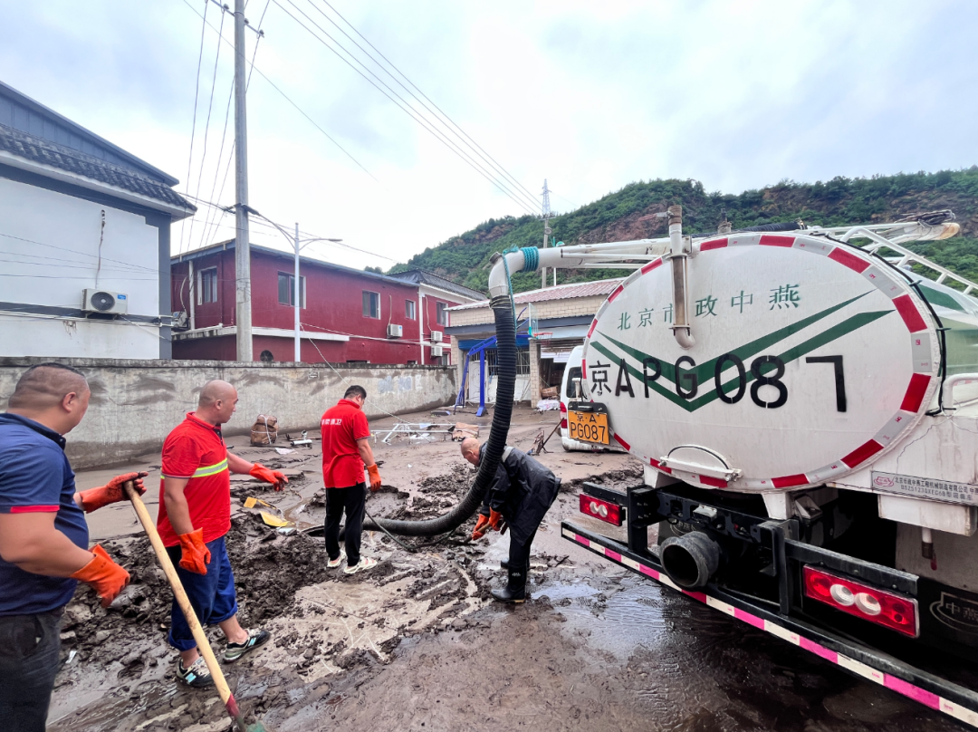 7月28日下午,怀柔区环卫公司迅速抽调作业人员40名、公厕维修人员5名,以及管道疏通、抽污、垃圾等专业作业车16辆,到琉璃庙镇开展清淤、抽污、抢修等作业。