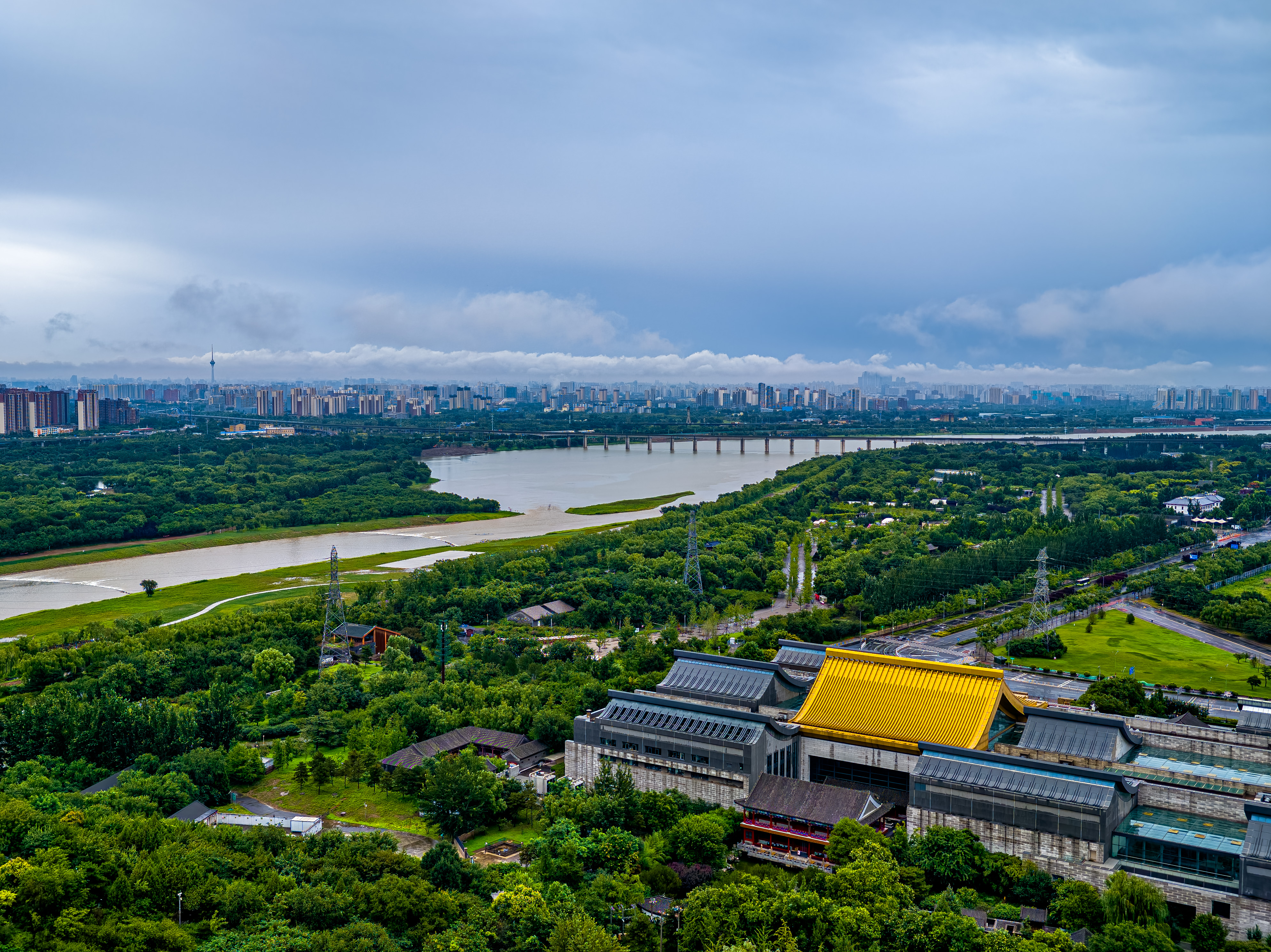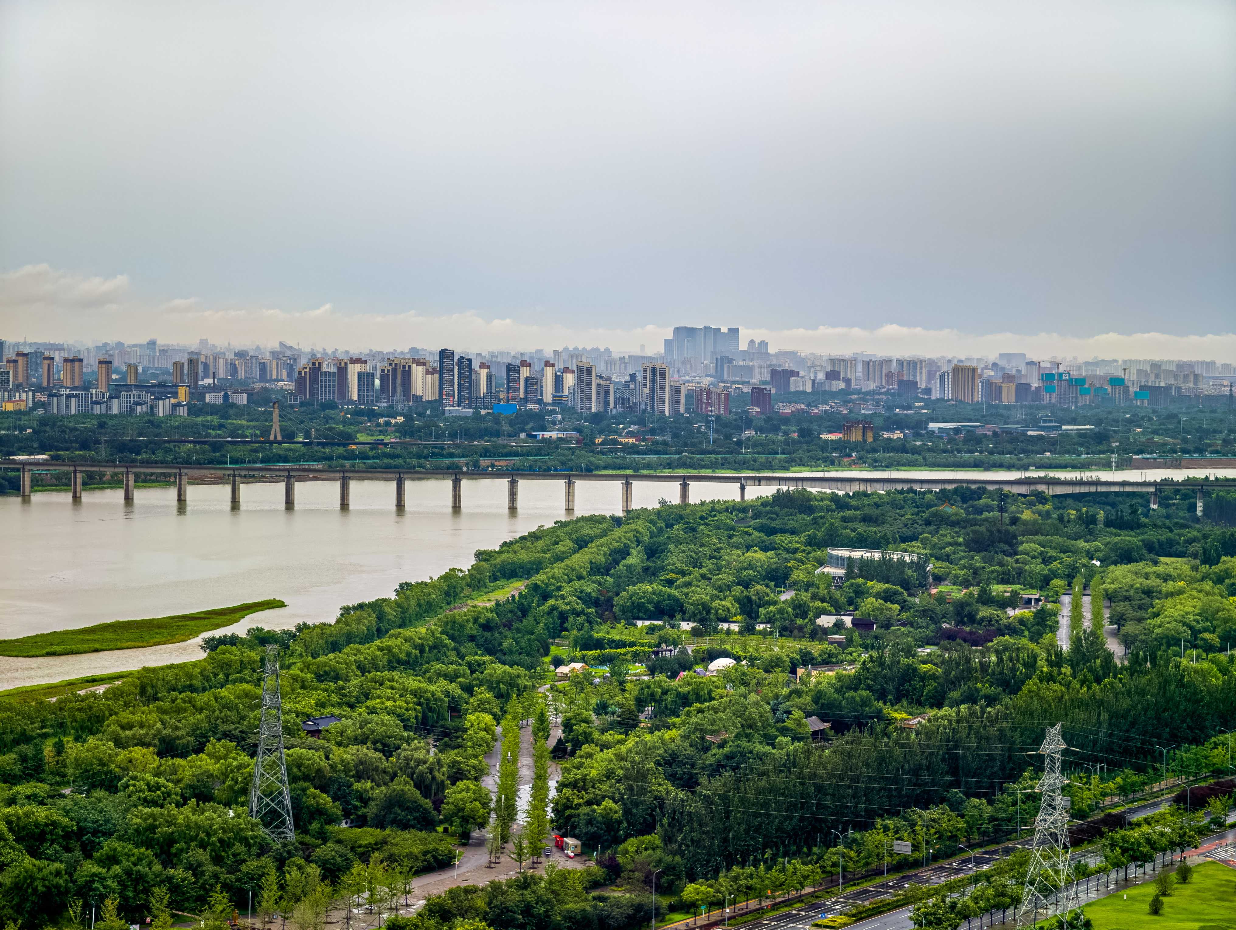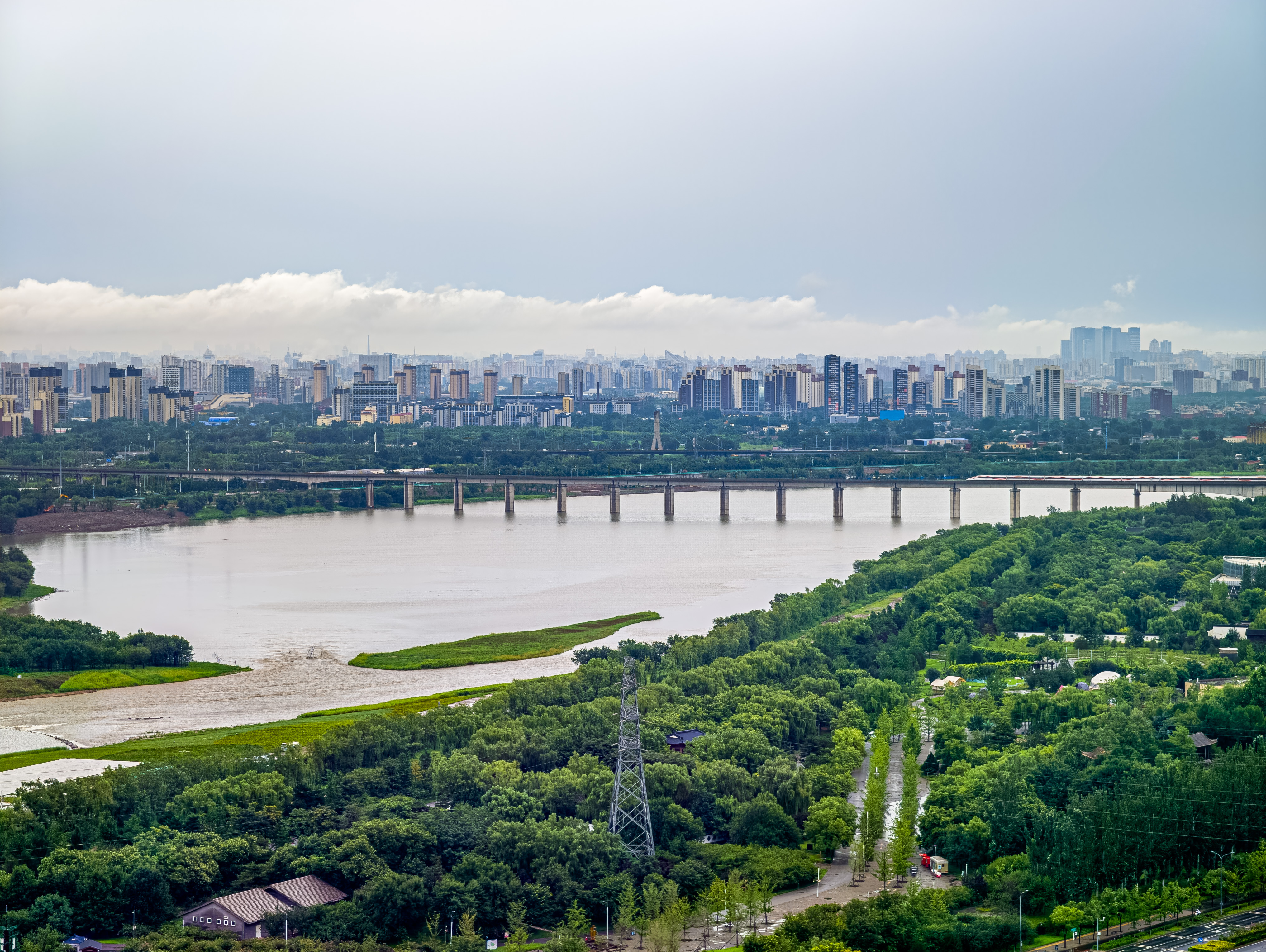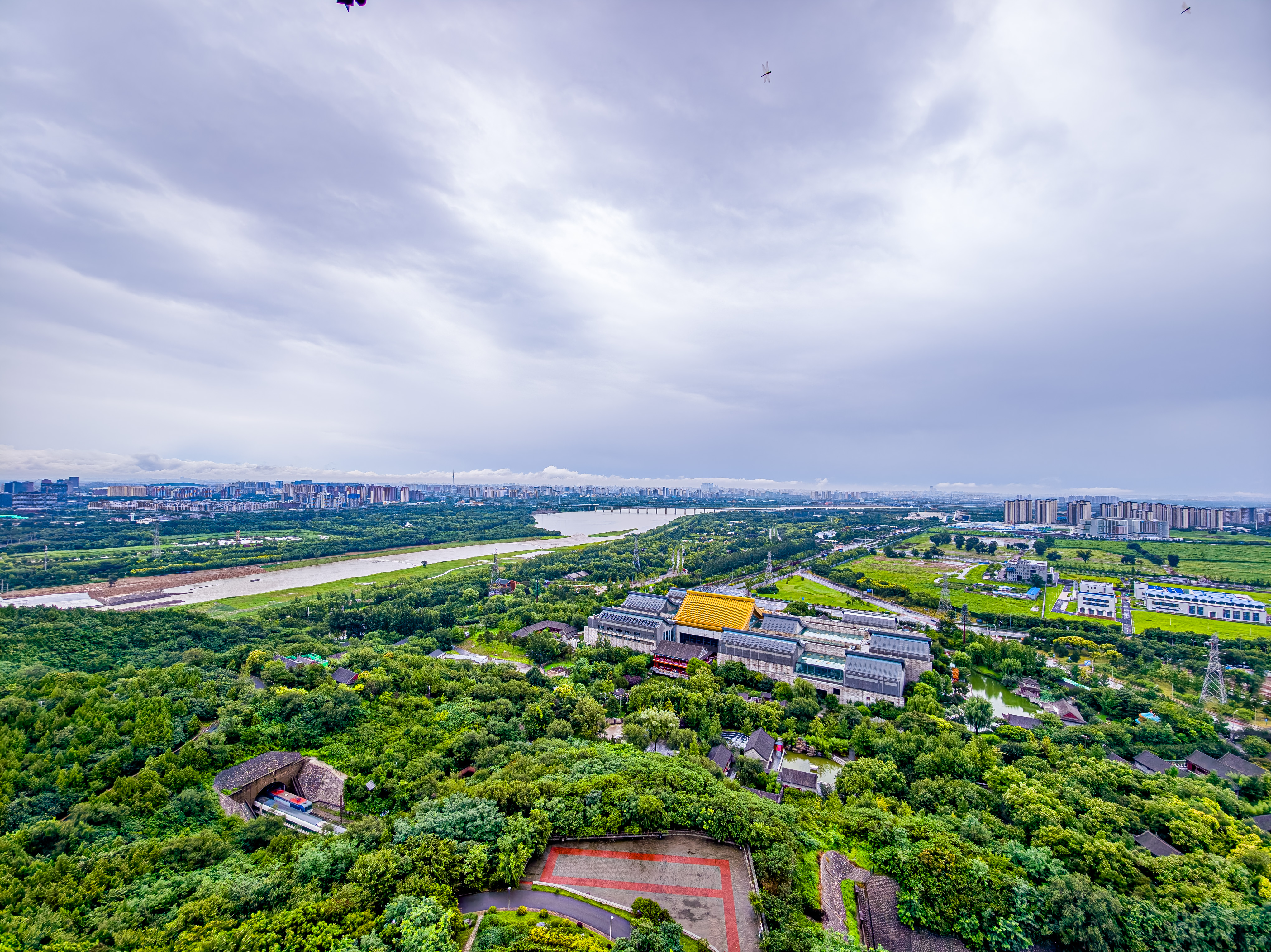 雨水初歇,天地如洗。立于永定塔上,云海翻涌如时代奔流,丰台全貌破雾而出。丽泽楼宇伸入云端,科技园区轮廓清晰,永定河脉动如常,列车与白鹭共绘流动长卷——这城市肌理在雨水的涤荡后愈发清晰。