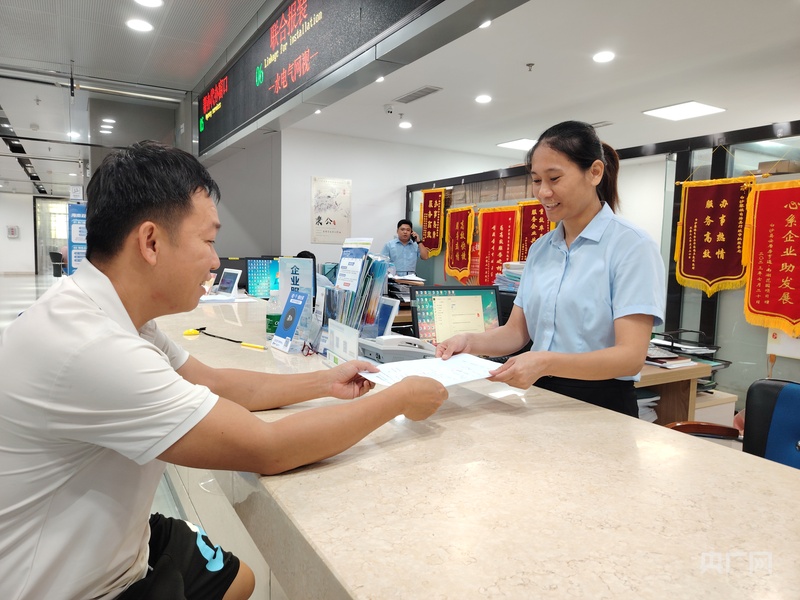 群众在白沙黎族自治县政务大厅办理事项(央广网记者 付美斌 摄)