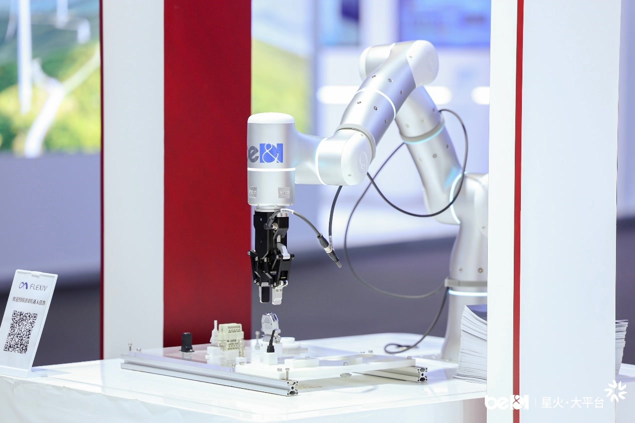 北电数智参与构建模拟仿真和模型训练平台,提供基于真实应用场景的训练场和仿真试验场所需的算力基础设施。现场展示的基于“星火·新兴行业底座”训练的通用插拔机械臂和智检设备,以强大的自主决策与柔性操作能力,展现在智能制造场景的应用潜力。