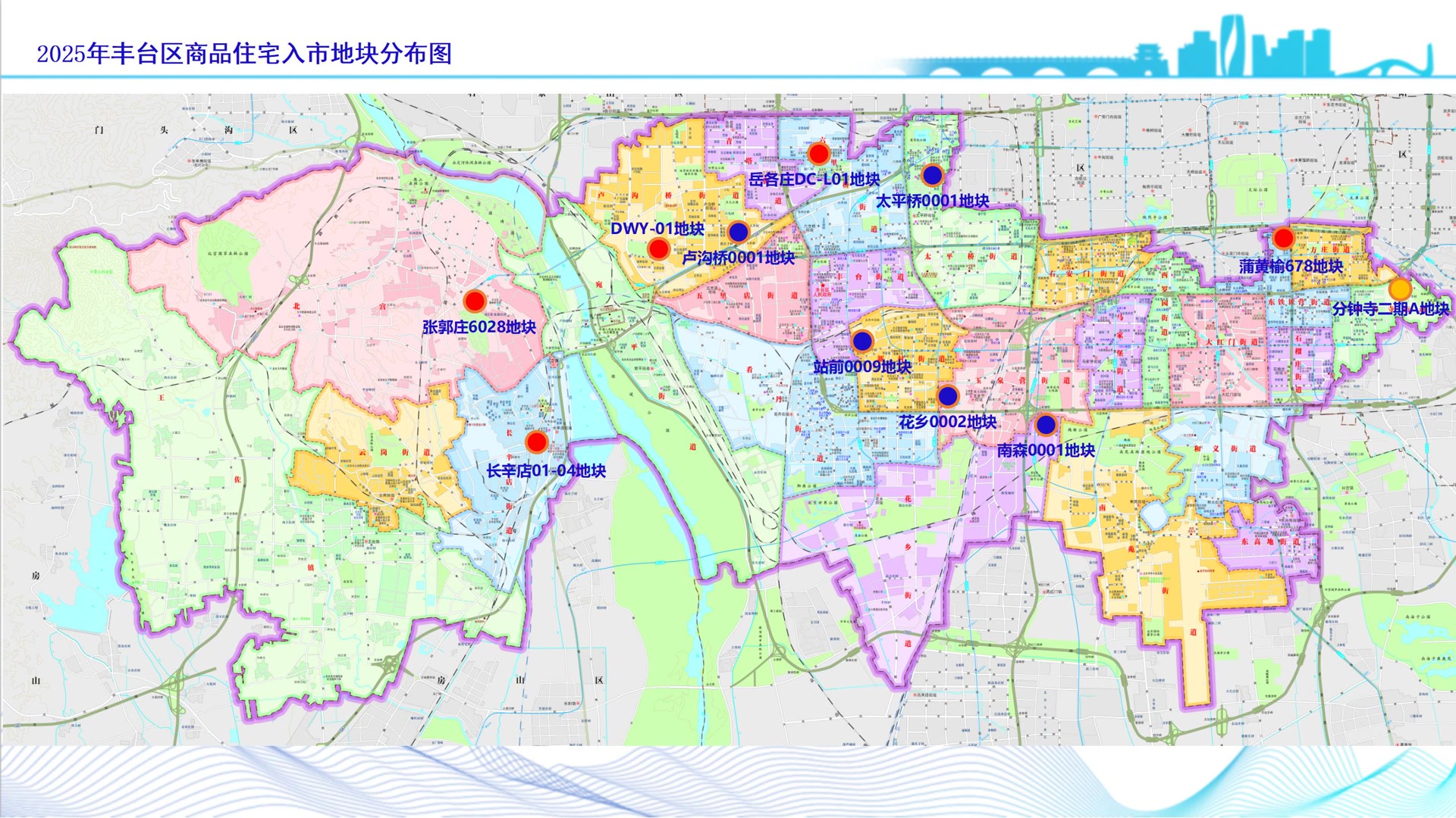 这11宗地分为“棚户区”改造、“城中村”改造和“土地一级开发”三类。打开2025年丰台区商品住宅入市地块分布图,11宗土地位置一目了然:分布于花乡、南苑、长辛店等热点区域,地处丰台区核心板块或新兴增长极。其中蒲黄榆地块位于南二环玉蜓桥外,太平桥地块位于西三环六里桥内,地理位置非常优越。