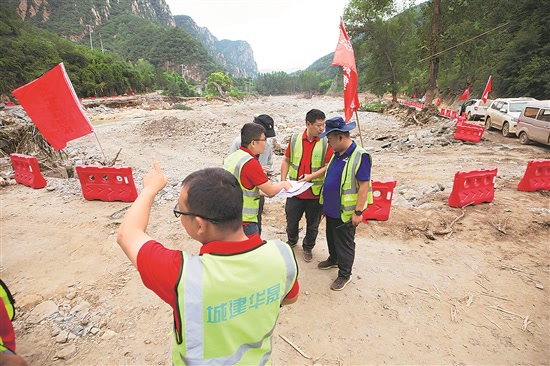 北京城建华晟公司也全力投入G234国道琉璃庙镇至梁根村30多公里生命通道的抢修工作中。公司成立应急抢险指挥部,集结起百人的攻坚队伍,以4支青年突击队为先锋骨干,同步从怀柔及周边区域紧急调集70多台(套)机械设备。
