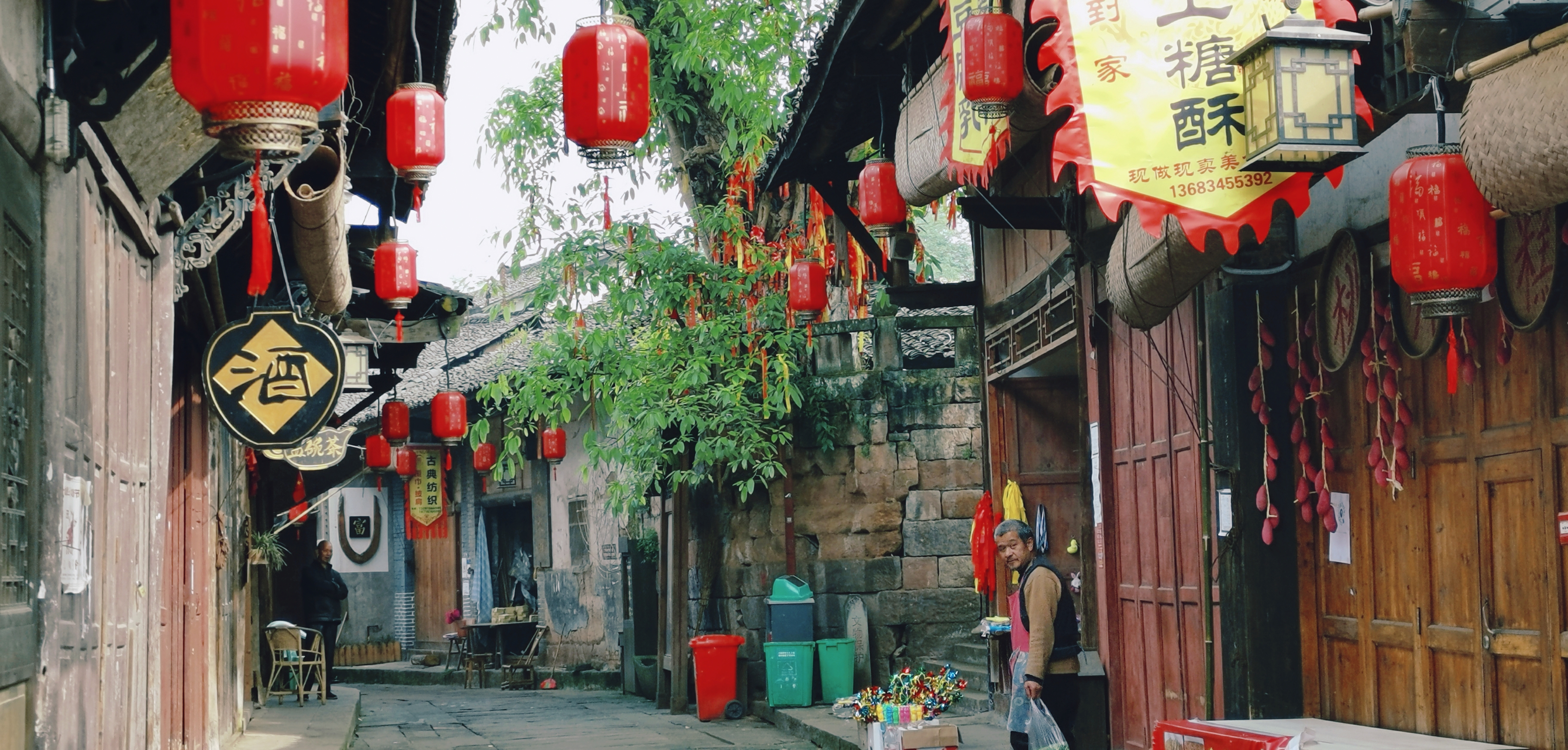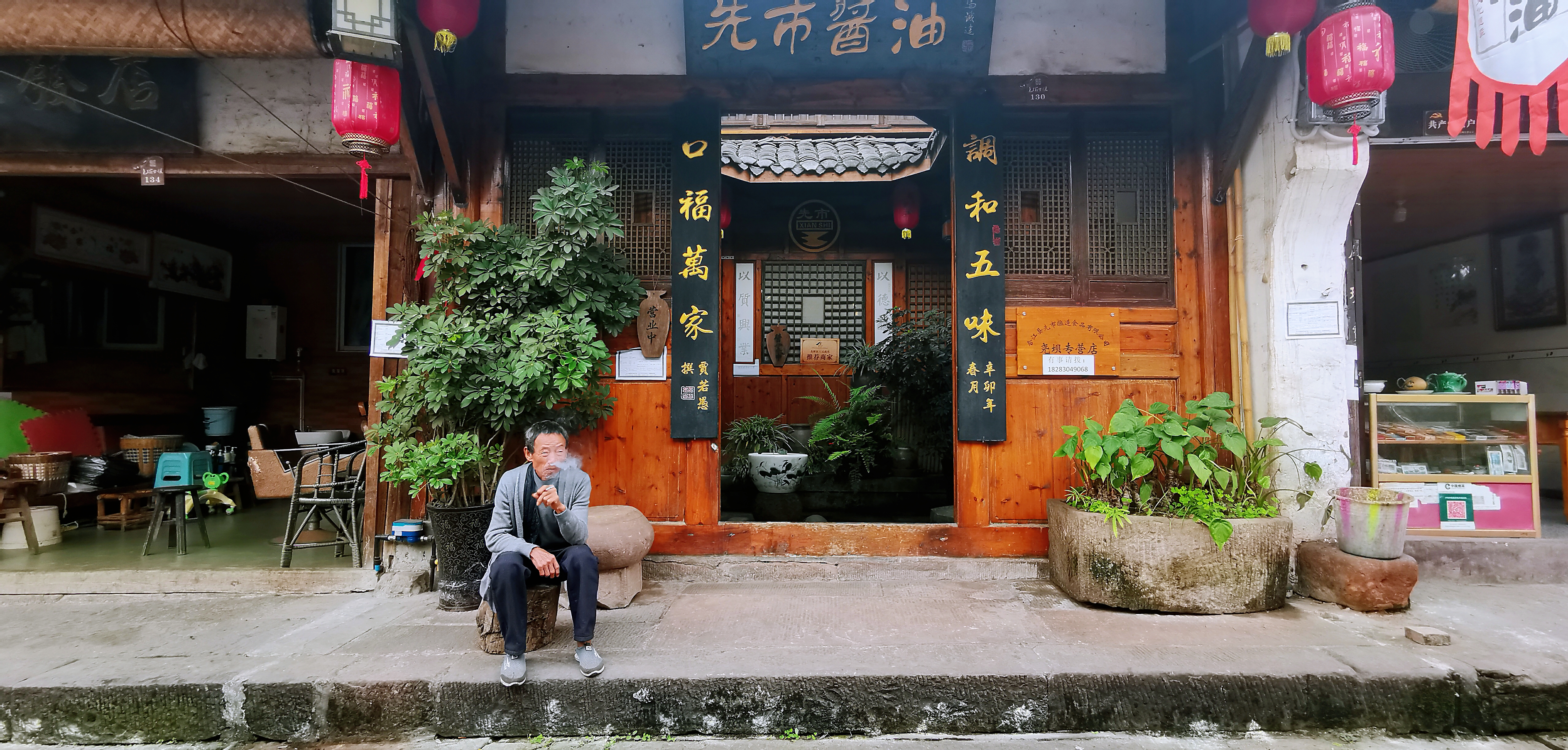 这是第二次走进尧坝古镇,千余米的老街南北蜿蜒而上,在起伏的地势中画出柔和的弧线。不同于别处过度修饰的商业化,尧坝的老房子还带着生活的体温。这里没有过多修饰,民风淳朴。古道古建古树,老人老宅老铺,商家的叫卖声,导游的解说声,路旁茶馆中不时传来的麻将声,述说着昔日的繁华和今天的变迁。