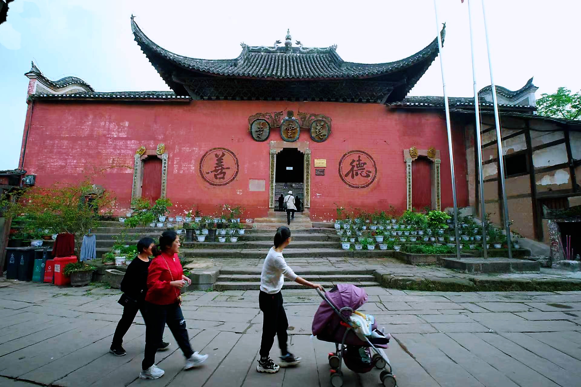古镇的建筑是川南民居的活标本,四合院群落如棋局般错落有致。青瓦木檐,黑白相间,绝大多数为清代、民国时期建筑。尧坝古镇以东岳庙为中心,这座如今称作慈云寺的建筑依山而建,层层叠叠的殿宇在绿树掩映中露出飞檐,是古镇规模最大的建筑群。