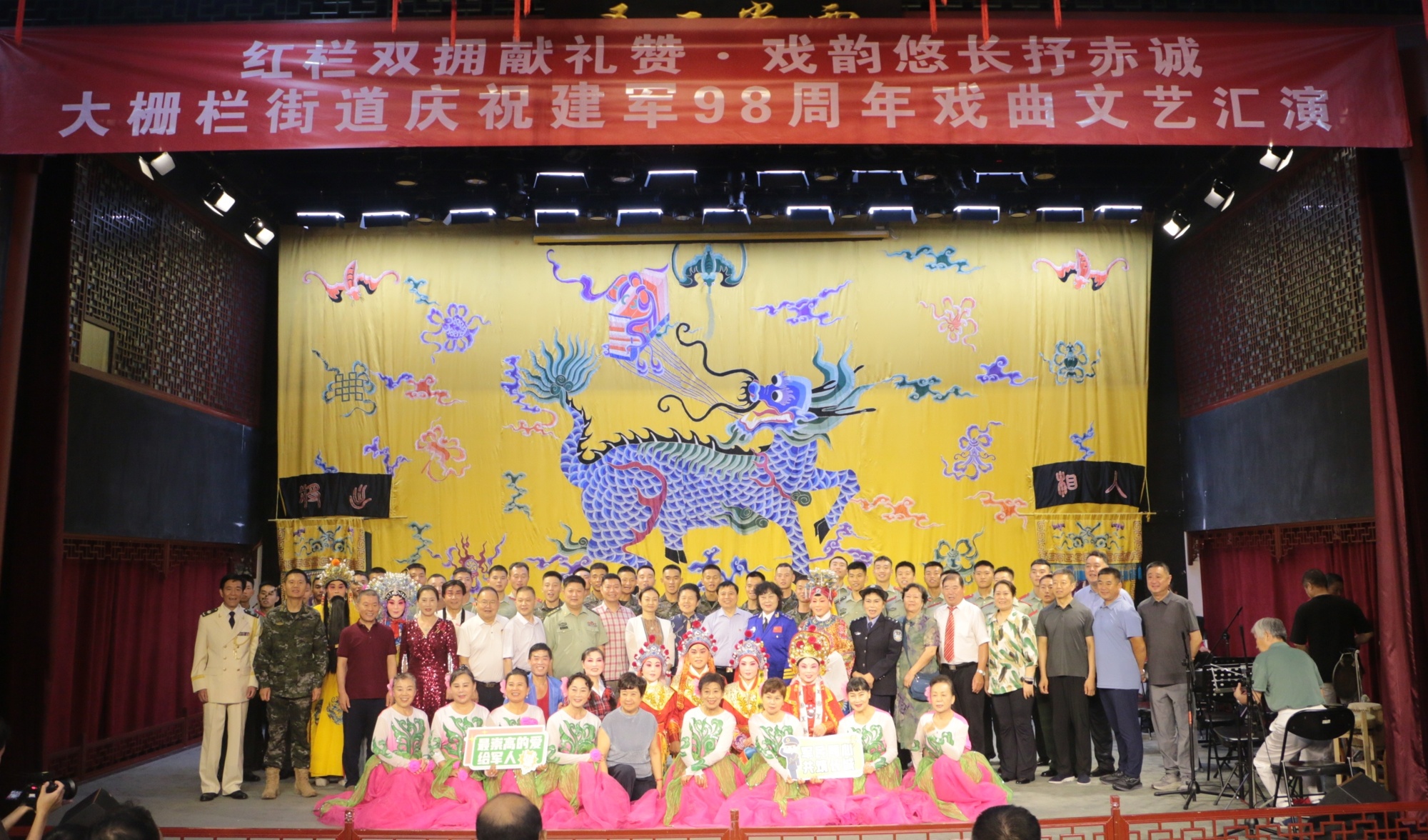 7月31日,大栅栏街道在三庆园戏楼举办庆祝建军98周年戏曲文艺汇演,以“红栏双拥献礼赞·戏韵悠长抒赤诚”为主题,军民共叙鱼水情。