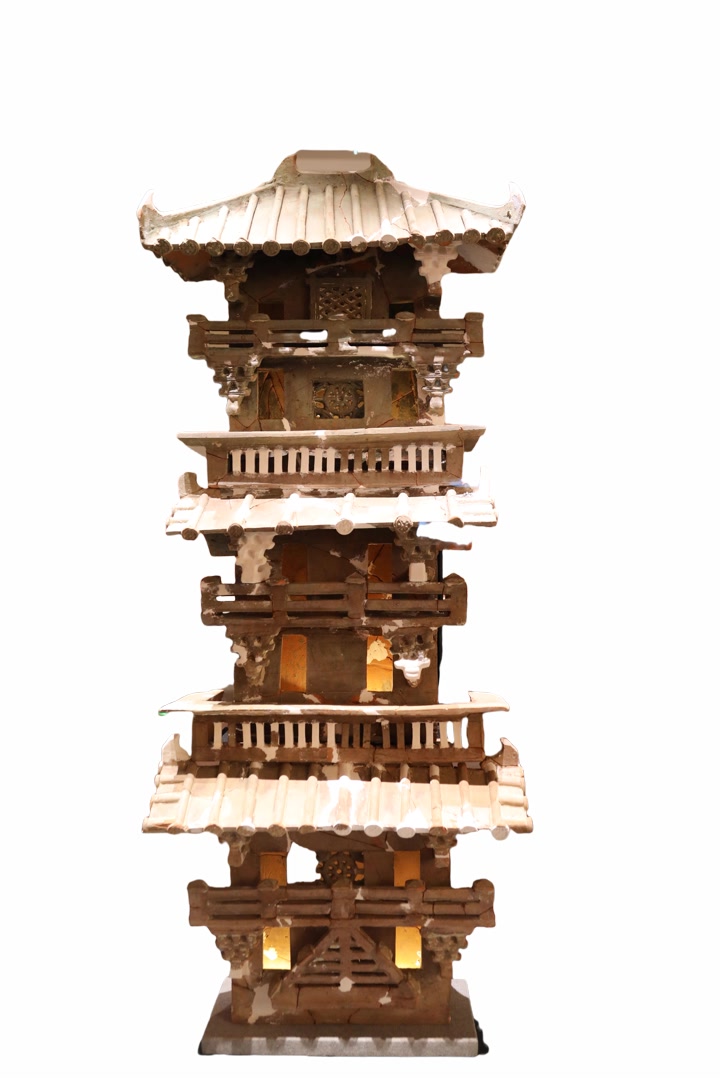 汉代是中国古代建筑的第一个高峰,木架结构渐趋成熟,砖石建筑飞速发展,西汉末年已形成独特建筑体系,并综合运用绘画、雕刻、文字等进行装饰,实现结构与装饰的有机结合,成为后世中国古代建筑的传统手法。汉代陶楼雕制精心细致,各个建筑部件(如屋顶样式、梁柱、斗拱等)清晰可见,材质质感(木材、砖瓦)可辨,基本反映了当时建筑的真实形象,是研究汉代建筑的重要资料。