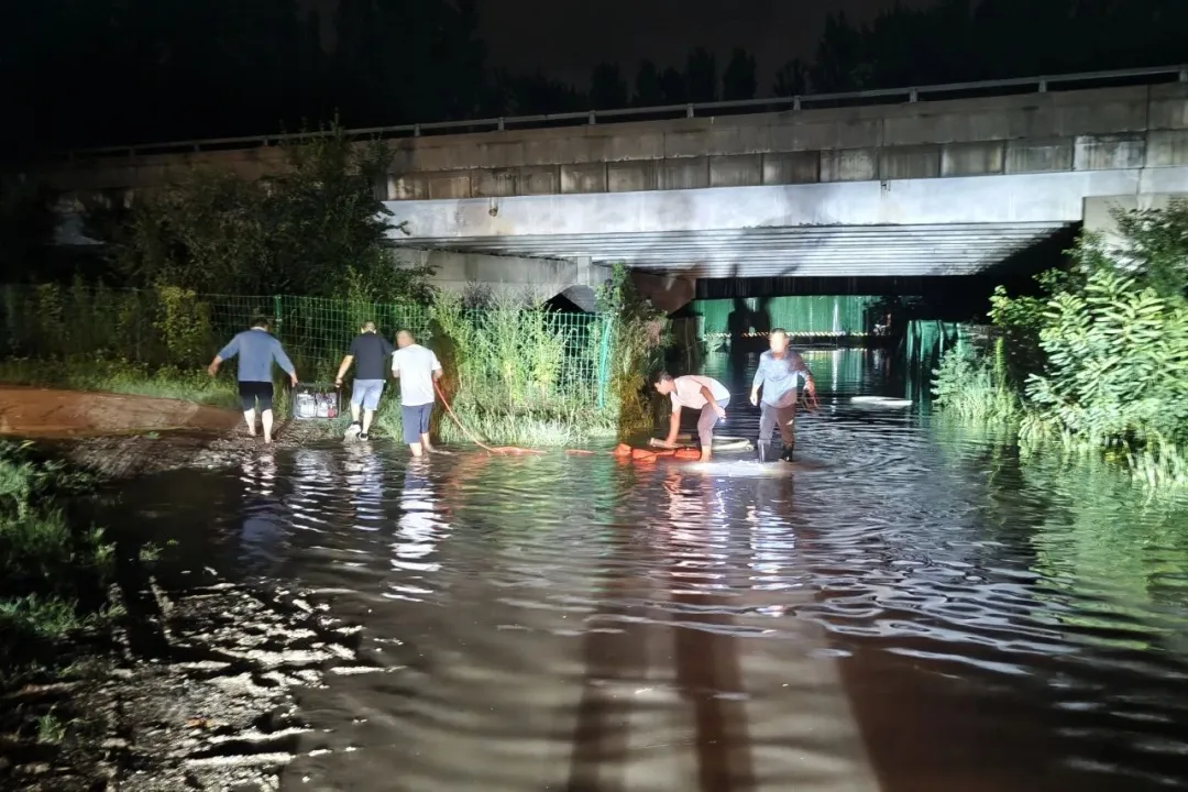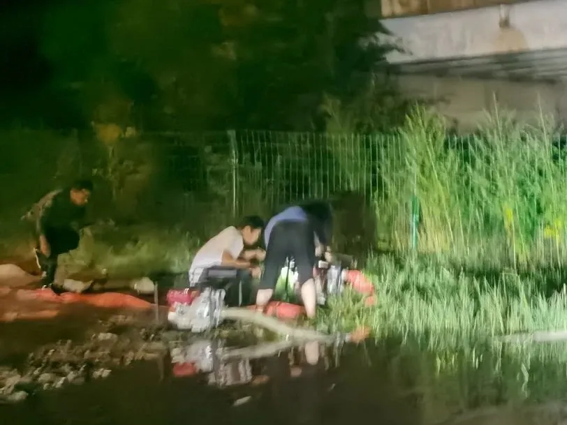 延庆法院驻村第一书记郑永强组织人手前往村口桥下积水处开展排水作业。众人带着两台抽水机、近百斤重的排水管涉水前行,从晚上11点奋战到凌晨三点多,终于把积水排到车辆可安全通过的位置。次日一大早,又继续到达现场作业,赶在中午前把积水全部排干、淤泥清扫干净。