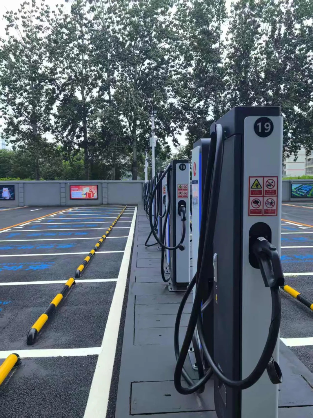 除了“极速超充”,场站里的37台250kW智能直流快充桩同样藏着“智慧”。这些快充桩体积精巧却性能强大,依托智能功率分配技术,能够依据车辆电池状态实时需求,动态调节输出功率,广泛兼容微型电动车、豪华SUV甚至大型或重载车辆,充分满足不同类型电动汽车的补能需求,展现了强大的通用性和适应性。