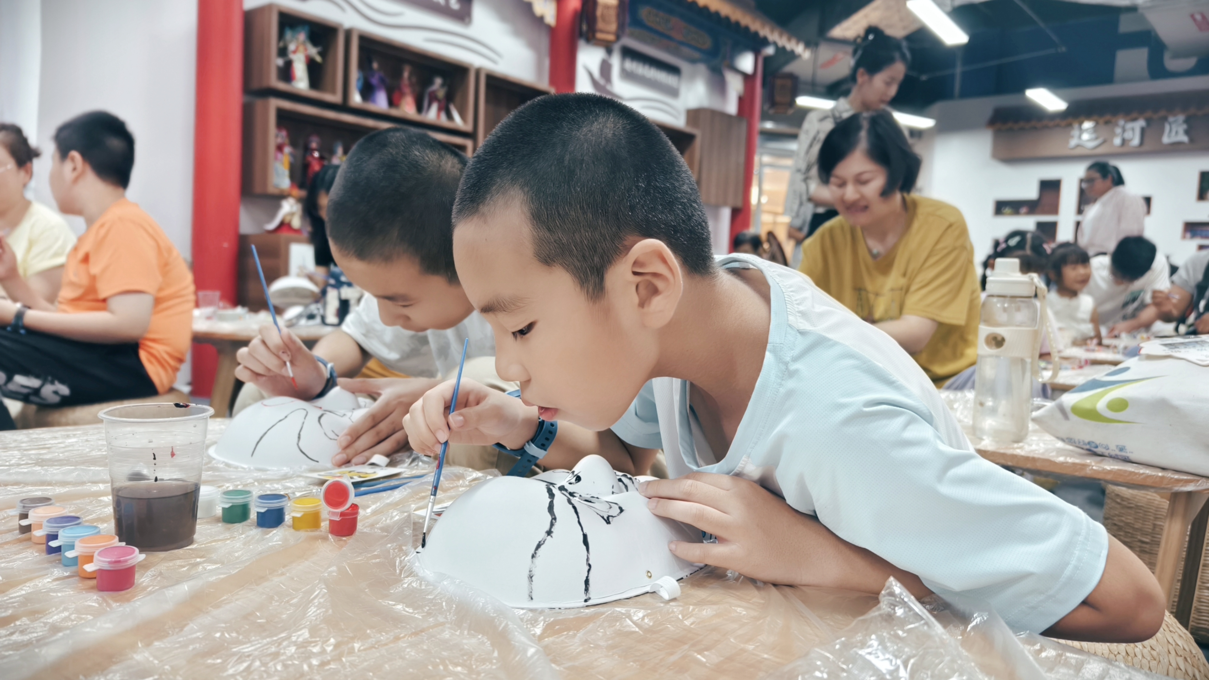 位于大运河博物馆旁的运河匠心坊,为暑期的小朋友们举办了自己动手非遗传承的活动。在这里,孩子和家长们都亲手体验了京剧脸谱面具的制作,大家都学得非常认真,深深体验到了非遗艺术的博大精深。