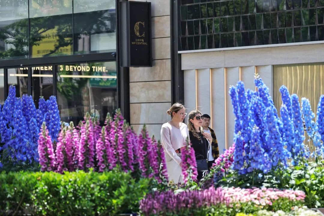 天坛公园的长廊旁,几位金发碧眼的游客正兴致勃勃地跟着一位北京大爷比画着太极拳的起手式。晨光中,一推一收间,是跨越语言的生活对话。一路向南,天坛南门旁的亿兆汉服体验店内,泰国游客黄笑笑和妹妹正兴致勃勃地挑选汉服,店员熟练地为她盘发、佩戴发簪。“我很喜欢中国和这里的服饰。”黄笑笑在社交平台分享道。体验馆张经理介绍,今年夏天以来,来店的外国人数量不断增多,唐制、宋制、明制等不同风格的汉服受到不少外籍年轻游客的喜欢。店内所提供的发型妆造一站式服务也让他们更好地融入氛围。这些短暂而真实的“入圈”时刻,让东城的景点变为入境游客可触摸、可参与、可共享的生活空间。