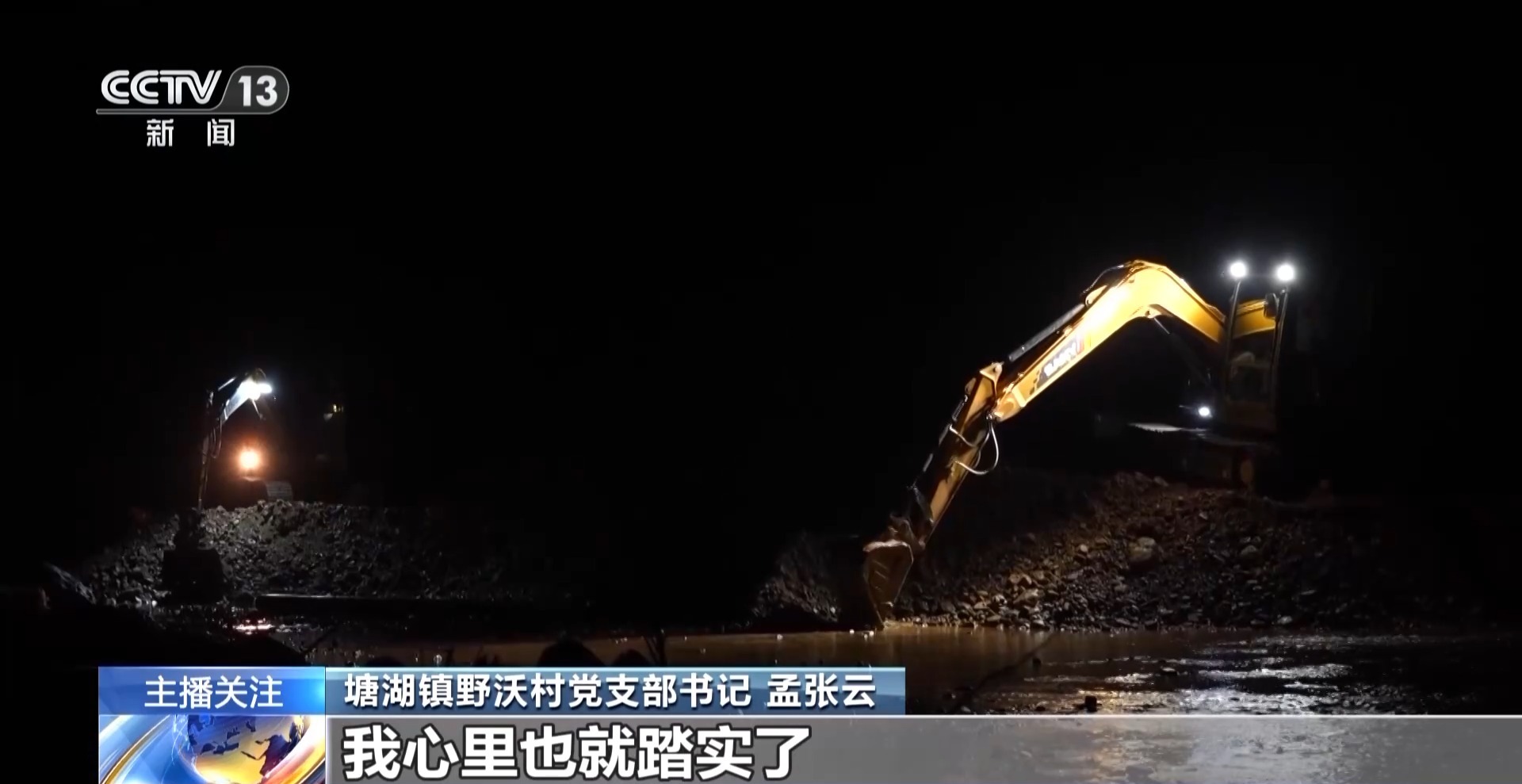 塘湖镇野沃村村民 崔景春:如果不排洪损失更大,所以干部们来排洪。当时钩机进不去,完全都是人工挖出来的,整整挖了一天。