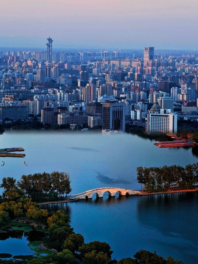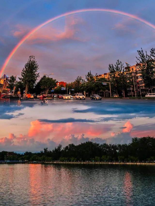 雨后京城晚霞绚烂,市民在大运河畔、亮马河、颐和园等地欣赏美景,纷纷拍照记录雨过天晴的古都风貌。