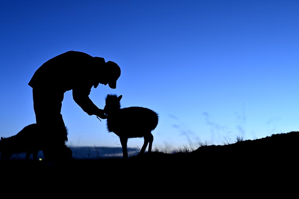 可可西里管理处索南达杰保护站,巡山队员与被救助的藏羚羊幼仔在一起。新华社记者张宏祥摄