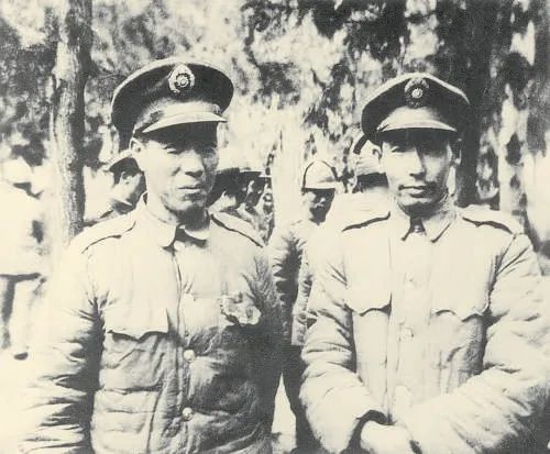 1948年11月8日,张克侠(右)、何基沣率2.3万余人起义,随后两人率部开赴解放区。