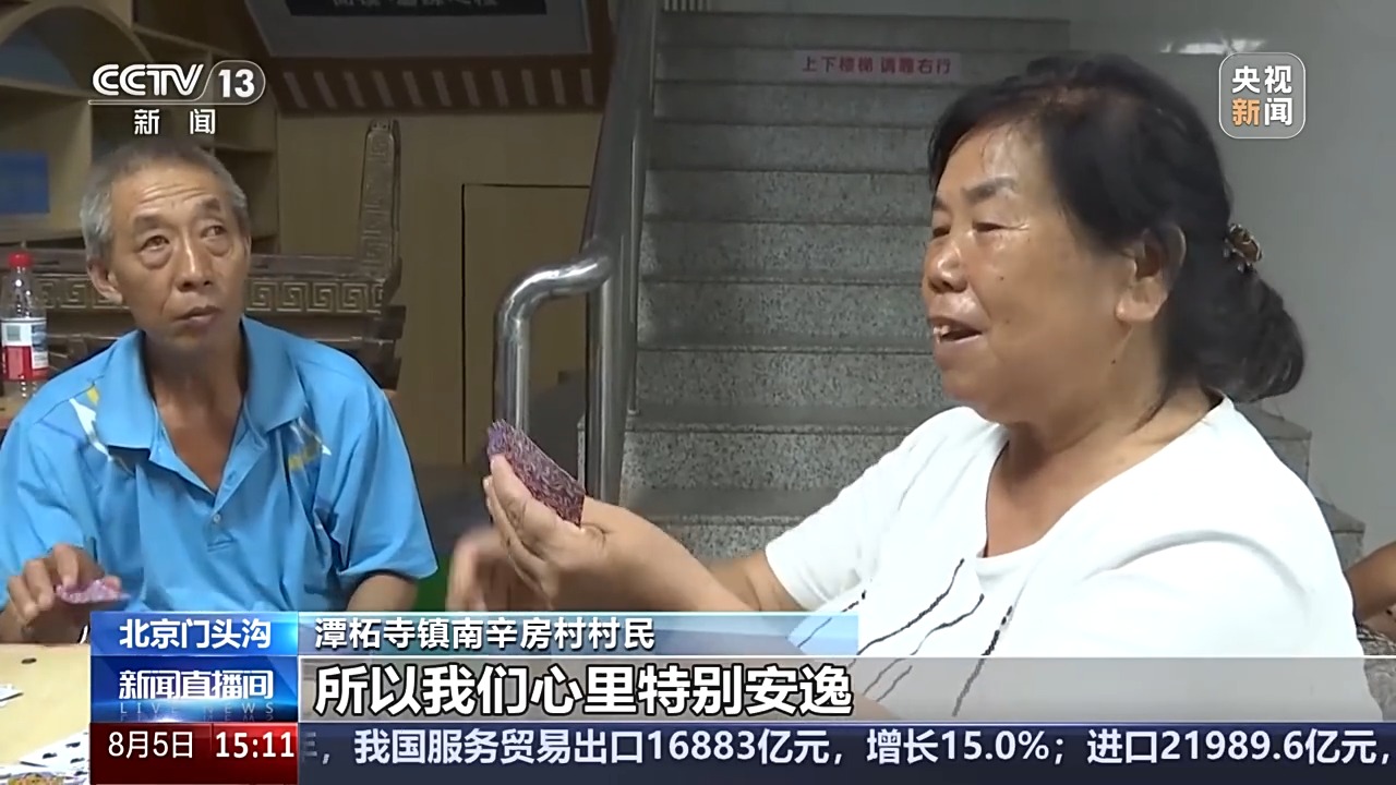 潭柘寺镇南辛房村村民:我觉得非常安全,而且我们这的领导对我们也非常关心,所以我们心里特别安逸。