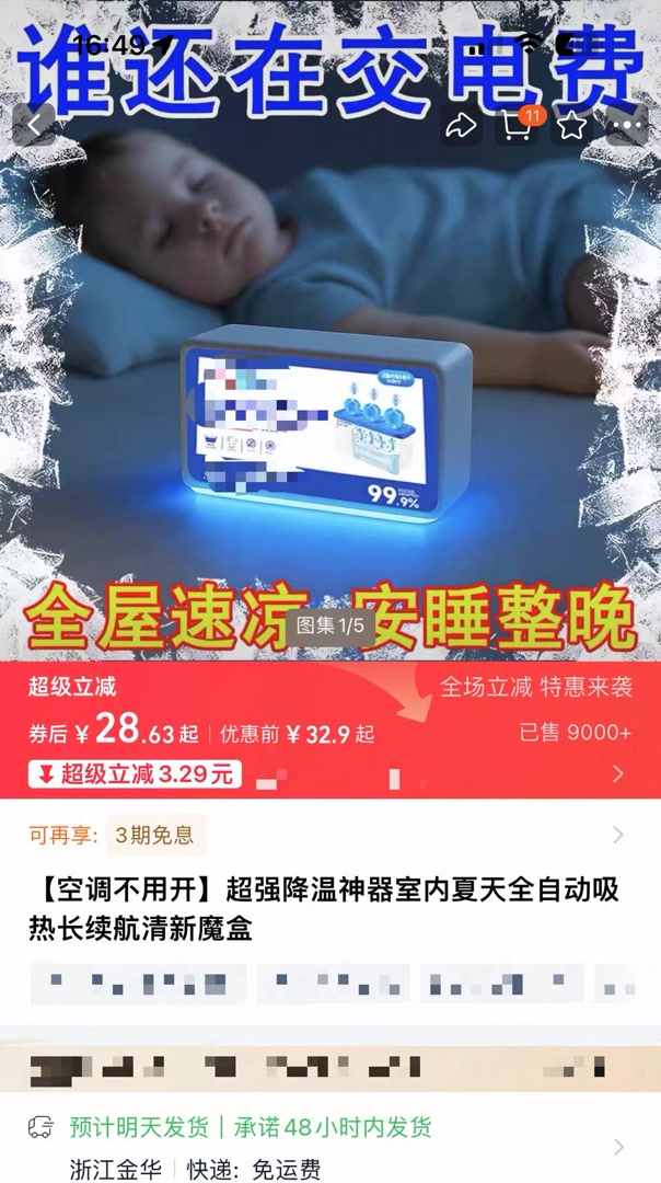 电商平台上的销售同样火爆。搜索“清凉神器”关键词,降温冰巾、降温挂件、“降温魔盒”等各类产品多达数百款。其中,一款标注“降温3℃持续3小时”的降温冰巾,销量已突破5万单;宣称“室内降温黑科技”的降温挂件,单个链接销量已超5000件;主打“全屋速凉,空调不用开”的“降温魔盒”,销量达9000多件。