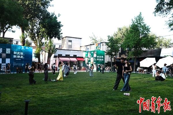 23岁的刘娜就喜欢淘微单相机和游戏卡带,记者在工作日晚上碰见刘娜时,她正和同事在友谊商店的精酿餐吧里喝酒。在草坪周边,友谊商店还引入了茶馆、咖啡馆、精酿餐吧等聚焦“慢体验”的商铺,与周边聚焦高端零售和快消的商圈作出区分。