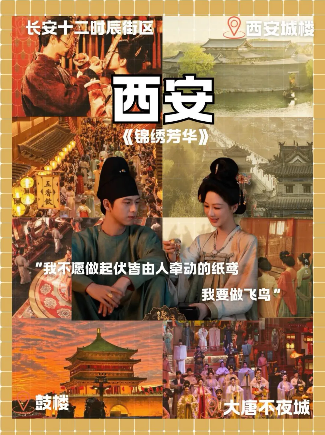 “北京大视听”重点文艺项目《锦绣芳华》将盛唐长安搬上屏幕,而西安,正是这份繁华最鲜活的注脚。剧中何惟芳培育牡丹的花田、西市的胡商摊铺、上元灯会的热闹,都能在这座古城找到踪迹。