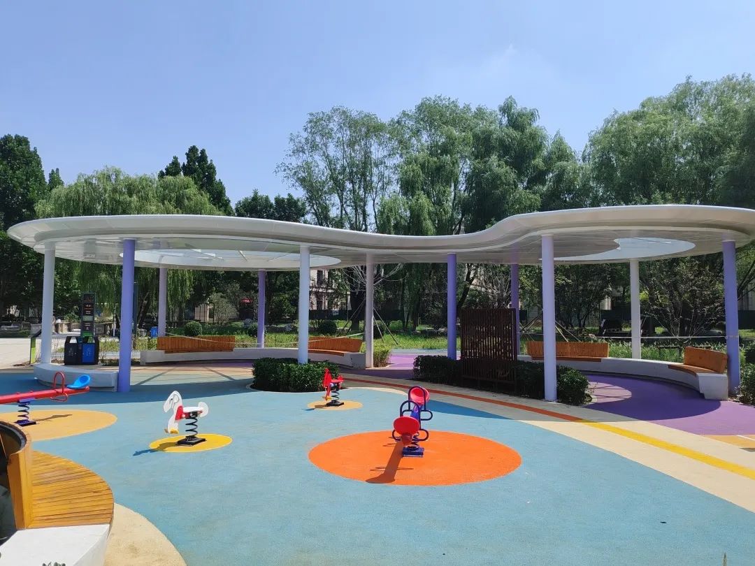 公园以“绿荫翡翠苑・青绿焕新园”为设计定位,遵循“微改造、大提升、补功能”原则,构建起“一轴、两环、七分区”的清晰结构。