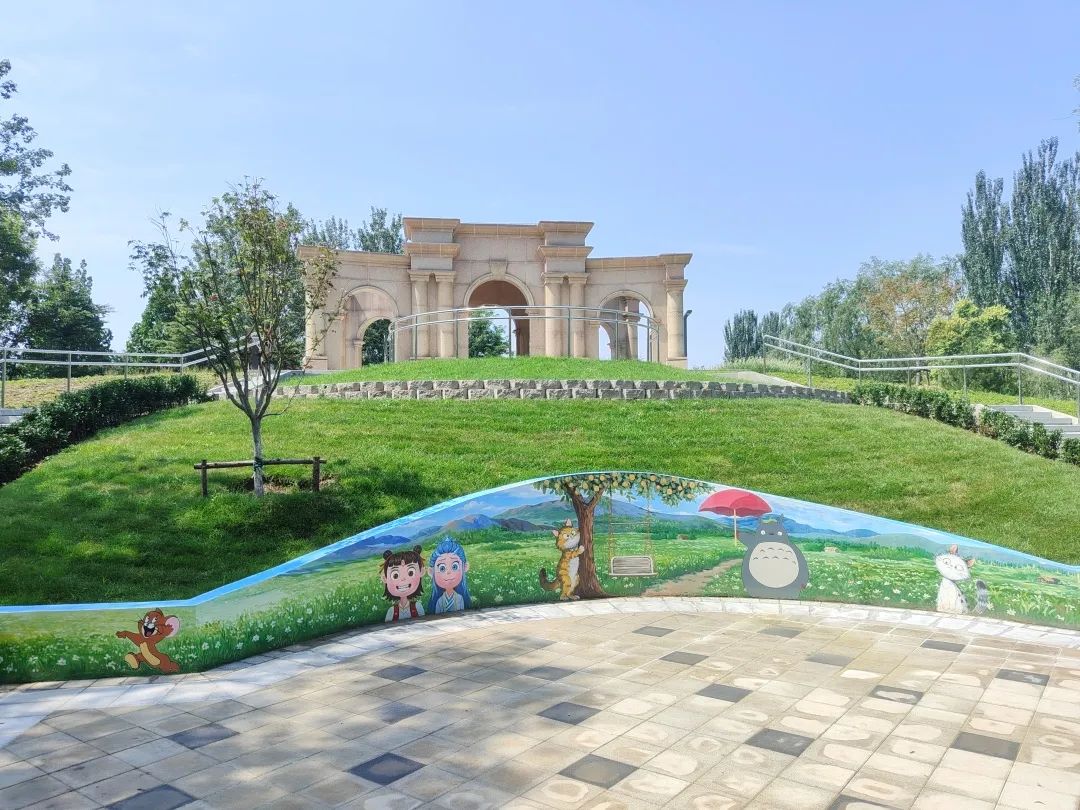 色彩鲜明的卡通彩绘墙、多样化无动力游乐设施、互动墙面、亲子空间及植物认知角